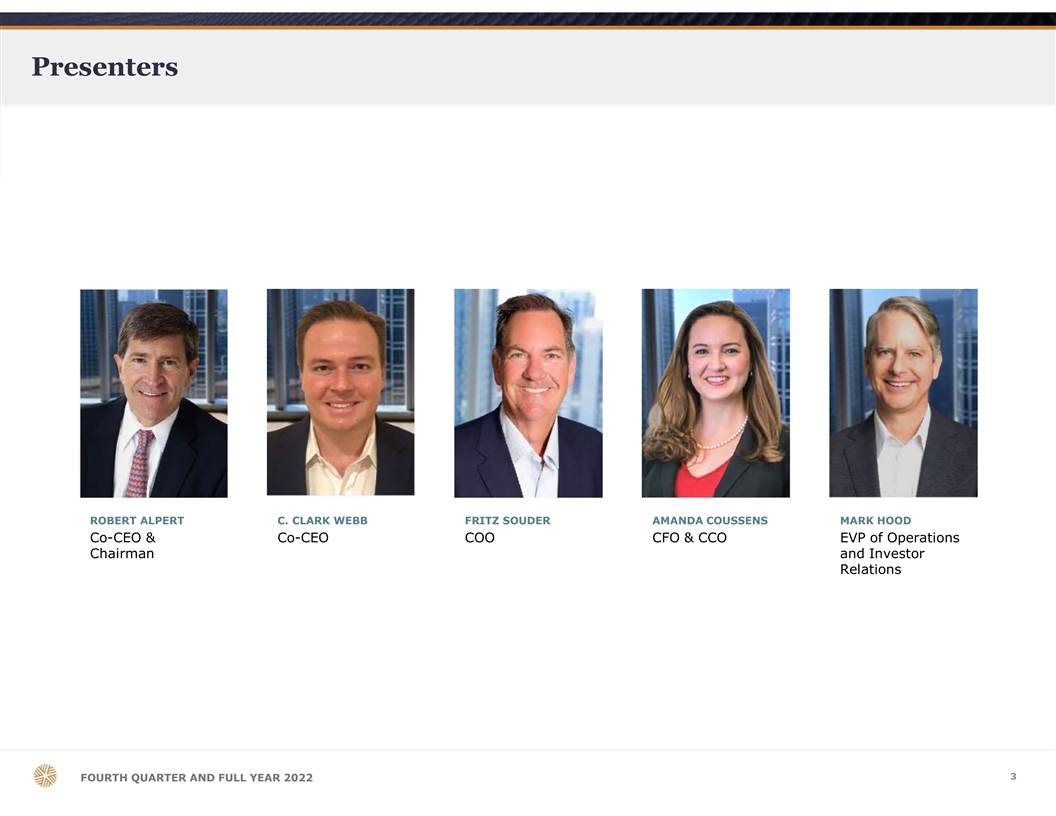 Presenters ROBERT ALPERT C. CLARK WEBB FRITZ SOUDER AMANDA COUSSENS MARK HOOD Co-CEO & Co-CEO COO CFO & CCO EVP of Operations Chairman and Investor Relations 3 FOURTH QUARTER AND FULL YEAR 2022