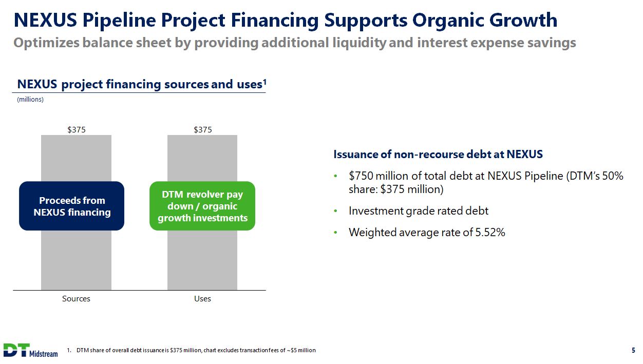 DT Midstream Investment Thesis Clean assets, clean balance sheet, clean story Integrated and well-positioned assets Haynesville / Appalachia dry gas focus Assets providing wellhead to market service Directly serving growing LNG export demand Highly contracted cash flows Long-term take-or-pay contracts Committed to a durable and growing dividend No direct commodity exposure Strong balance sheet with low leverage Self-funded investment program No significant near-term debt maturities Low and declining leverage Mature environmental, social and governance leadership Executing on energy transition projects Committed to 30% emissions reduction by 2030 and net zero by 2050 DT Midstream 4