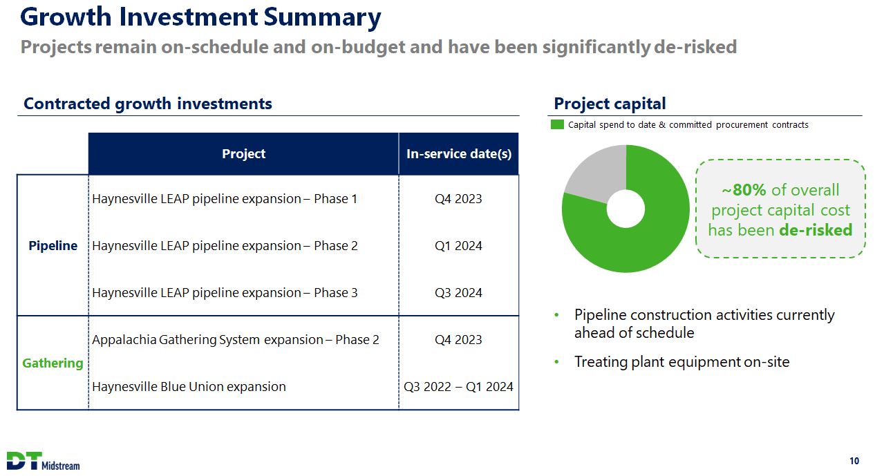 Gathering Volume Summary Haynesville throughput (bcf/d) Blue Union Gathering 1.57 Q1 2022 1.53 Q2 2022 1.66 Q3 2022 1.70 Q4 2022 1.63 Q1 2023 Northeast throughput (bcf/d) Susquehanna Gathering Appalachia Gathering Tioga Gathering 1.34 Q1 2022 1.28 Q2 2022 1.35 Q3 2022 1.35 Q4 2022 1.36 Q1 2023 DT Midstream 9