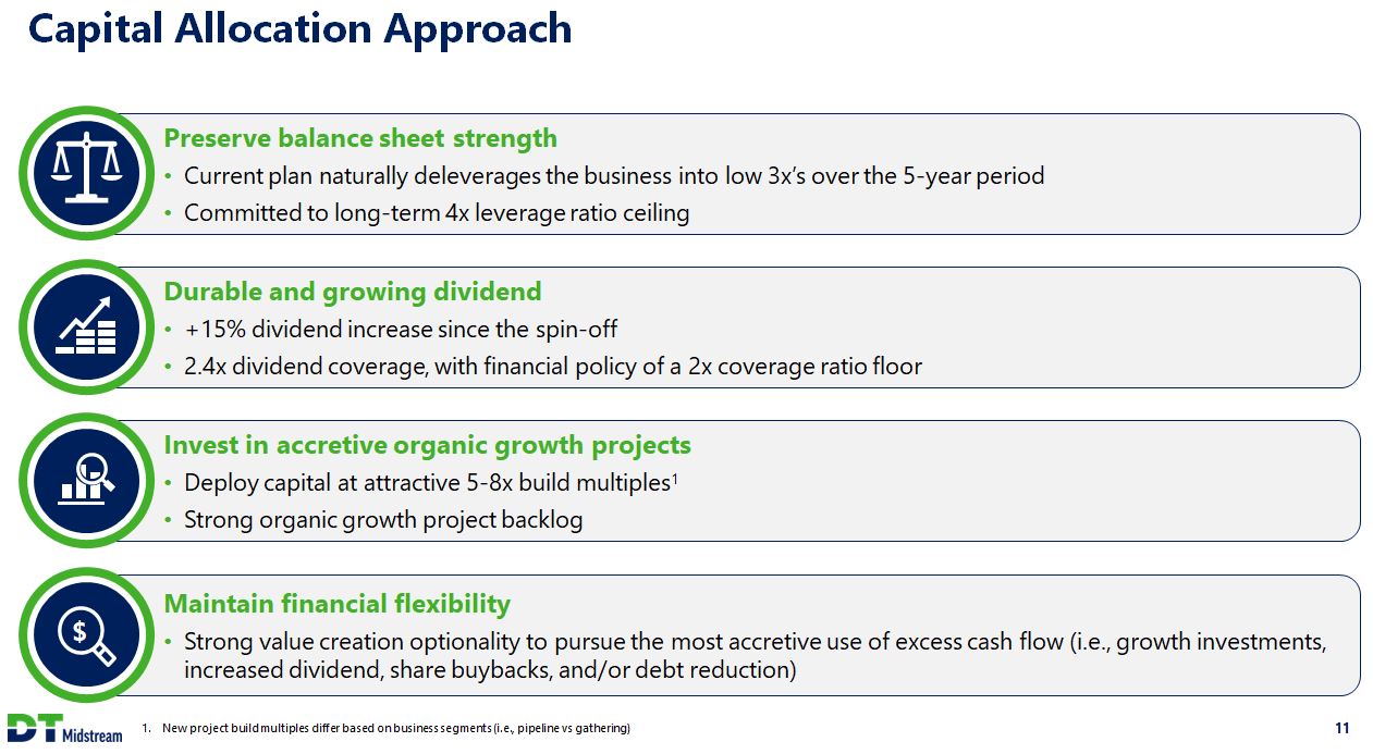 Growth Investment Summary Projects remain on-schedule and on-budget and have been significantly de-risked Contracted growth investments Pipeline Gathering Project Haynesville LEAP pipeline expansion - Phase 1 Haynesville LEAP pipeline expansion - Phase 2 Haynesville LEAP pipeline expansion - Phase 3 Appalachia Gathering System expansion - Phase 2 Haynesville Blue Union expansion In-service date(s) Q4 2023 Q1 2024 Q3 2024 Q4 2023 Q3 2022 - Q1 2024 Project capital Capital spend to date & committed procurement contracts ~80% of overall project capital cost has been de-risked Pipeline construction activities currently ahead of schedule Treating plant equipment on-site DT Midstream 10