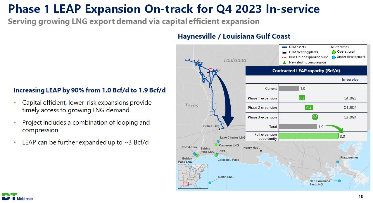 2023-2027 commercial focus Strong Organic Opportunities Across Our Existing Footprint Pipeline Gathering Energy Transition Asset LEAP Stonewall NEXUS Millennium Blue Union Appalachia Gathering Tioga Carbon Capture and Sequestration Hydrogen Active discussions for expansions up to ~3 Bcf/d Active discussions with existing and new customers for expansion opportunities Generation Pipeline interconnection New supply connections; hydraulic optimization Recently completed open season for potential expansion opportunity Active discussions for gathering and treating expansion opportunities Active discussions for further expansion Active discussions regarding full-scale development Continue to advance Louisiana CCS opportunity towards final investment decision New project development Advance hydrogen hub project concepts Work with strategic partner to identify and advance development opportunities Overview Connecting growing Haynesville supply with growing LNG demand Providing incremental Appalachia pipeline takeaway to East Coast LNG and Gulf Coast markets Providing Ohio industrial corridor access to NEXUS supply Enabling additional supply into New York and New England markets through compression expansion Serving growing production from existing customers; step out expansions to connect new customers Serving growing production from existing customers Supporting new drilling activity in undeveloped acreage Permanently sequestering CO2 from DTM treating assets; underpinned by 45Q tax credit Leveraging strong expertise to advance CCS in new regions Commercializing hydrogen transportation, storage and production DT Midstream 17