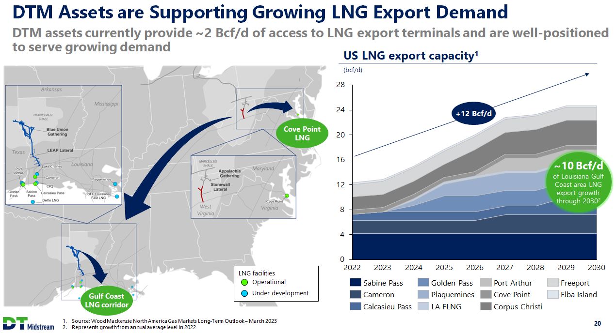 Serving Highly Economic Resource Areas DTM's assets are well positioned on the new drilling cost supply curve New drill supply curve 20251 Breakeven $/MMBtu $4.50 $4.00 $3.50 $3.00 $2.50 $2.00 $1.50 $1.00 $0.50 $0.00 DTM asset resource areas Blue Union / LEAP AGS / Stonewall SGC / Bluestone Tioga Gathering Other Associated Gas Annual new supply needed to offset production declines and meet new demand 0 1 2 3 4 5 6 7 8 9 10 11 12 13 14 15 16 17 18 19 20 21 22 23 24 New drill supply (bcf/d) DT Midstream 1. Includes regional basis differential Source: Wood Mackenzie North America Gas Markets Long-Term Outlook - March 2023 19