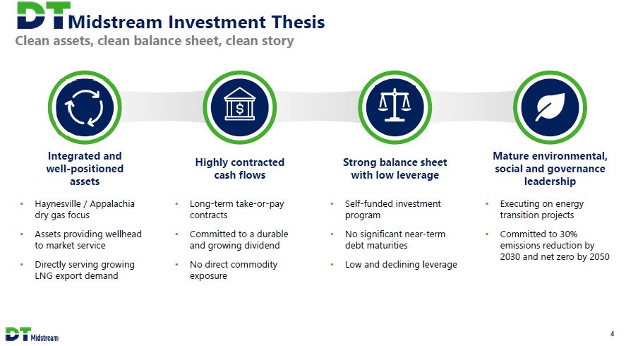 DT Midstream Investment Thesis Clean assets, clean balance sheet, clean story Integrated and well-positioned assets Haynesville / Appalachia dry gas focus Assets providing wellhead to market service Directly serving growing LNG export demand Highly contracted cash flows Long-term take-or-pay contracts Committed to a durable and growing dividend No direct commodity exposure Strong balance sheet with low leverage Self-funded investment program No significant near-term debt maturities Low and declining leverage Mature environmental, social and governance leadership Executing on energy transition projects Committed to 30% emissions reduction by 2030 and net zero by 2050 4