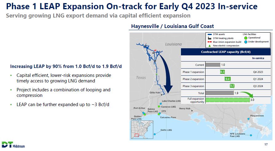 Strong Organic Opportunities Across Our Existing Footprint Asset 2023-2027 commercial focus Overview Pipeline LEAP Active discussions for expansions up to ~3 Bcf/d Connecting growing Haynesville supply with growing LNG demand Stonewall Active discussions with existing and new customers for expansion opportunities Providing incremental Appalachia pipeline takeaway to East Coast LNG and Gulf Coast markets NEXUS Generation Pipeline interconnection New supply connections; hydraulic optimization Providing Ohio industrial corridor access to NEXUS supply Millennium Recently completed open season for potential expansion opportunity Enabling additional supply into New York and New England markets through compression expansion Gathering Blue Union Active discussions for gathering and treating expansion opportunities Serving growing production from existing customers; step out expansions to connect new customers Appalachia Gathering Active discussions for further expansion Serving growing production from existing customers Ohio Utica (New) Initial buildout of new trunkline and gathering network Emerging resource development in Ohio Utica Tioga Active discussions regarding full-scale development Supporting new drilling activity in undeveloped acreage Energy Transition Carbon Capture and Sequestration Continue to advance Louisiana CCS opportunity towards final investment decision New project development Permanently sequestering CO2 from DTM treating assets; supported by 45Q tax credit Leveraging strong expertise to advance CCS in new regions Hydrogen Advance hydrogen hub project concepts Work with strategic partner to identify and advance development opportunities Commercializing hydrogen transportation, storage and production 16