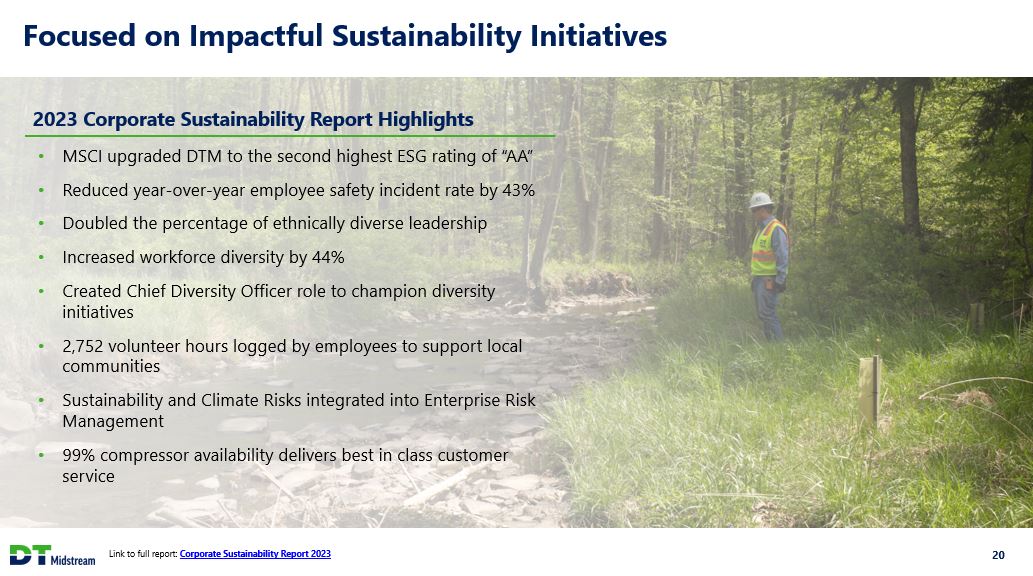 Safe Harbor Statement This presentation contains statements which, to the extent they are not statements of historical or present fact, constitute "forward-looking statements" under the securities laws. These forward-looking statements are intended to provide management's current expectations or plans for our future operating and financial performance, business prospects, outcomes of regulatory proceedings, market conditions, and other matters, based on what we believe to be reasonable assumptions and on information currently available to us. Forward-looking statements can be identified by the use of words such as "believe," "expect," "expectations," "plans," "strategy," "prospects," "estimate," "project," "target," "anticipate," "will," "should," "see," "guidance," "outlook," "confident" and other words of similar meaning. The absence of such words, expressions or statements, however, does not mean that the statements are not forward-looking. In particular, express or implied statements relating to future earnings, cash flow, results of operations, uses of cash, tax rates and other measures of financial performance, future actions, conditions or events, potential future plans, strategies or transactions of DT Midstream, and other statements that are not historical facts, are forward-looking statements. Forward-looking statements are not guarantees of future results and conditions, but rather are subject to numerous assumptions, risks, and uncertainties that may cause actual future results to be materially different from those contemplated, projected, estimated, or budgeted. Many factors may impact forward-looking statements of DT Midstream including, but not limited to, the following: changes in general economic conditions, including increases in interest rates and the impact of inflation on our business; competitive conditions in our industry; global supply chain disruptions; actions taken by third-party operators, processors, transporters and gatherers; changes in expected production from Southwestern Energy and other third parties in our areas of operation; demand for natural gas gathering, transmission, storage, transportation and water services; the availability and price of natural gas to the consumer compared to the price of alternative and competing fuels; competition from the same and alternative energy sources; our ability to successfully implement our business plan; our ability to complete organic growth projects on time and on budget; our ability to finance, complete, or successfully integrate acquisitions; the price and availability of debt and equity financing; restrictions in our existing and any future credit facilities and indentures; energy efficiency and technology trends; changing laws regarding cyber security and data privacy, and any cyber security threat or event; operating hazards, environmental risks, and other risks incidental to gathering, storing and transporting natural gas; changes in environmental laws, regulations or enforcement policies, including laws and regulations relating to climate change and greenhouse gas emissions; natural disasters, adverse weather conditions, casualty losses and other matters beyond our control; the impact of outbreaks of illnesses, epidemics and pandemics, and any related economic effects; the ongoing conflict between Russia and Ukraine, including resulting commodity price volatility and risk of cyber-based attacks; relations and markets, including the ability to attract, hire and retain key employee and contract personnel; large customer defaults; changes in tax status, as well as changes in tax rates and regulations; ability to develop low carbon business opportunities and deploy greenhouse gas reducing technologies; the effects of existing and future laws and governmental regulations; changes in insurance markets impacting costs and the level and types of coverage available; the timing and extent of changes in commodity prices; the suspension, reduction or termination of our customers' obligations under our commercial agreements; disruptions due to equipment interruption or failure at our facilities, or third-party facilities on which our business is dependent; the effects of future litigation; the qualification of the spin-off of DT Midstream from DTE Energy ("the Spin-Off") as a tax-free distribution; the allocation of tax attributes from DTE Energy in accordance with the agreement that governs the respective rights, responsibilities and obligations of DTE Energy and DT Midstream after the Spin-Off with respect to all tax matters; and the risks described in our Annual Report on Form 10-K for the year ended December 31, 2022 and our reports and registration statements filed from time to time with the SEC. The above list of factors is not exhaustive. New factors emerge from time to time. We cannot predict what factors may arise or how such factors may cause actual results to vary materially from those stated in forward-looking statements, see the discussion under the section entitled "Risk Factors" in our Annual Report for the year ended December 31, 2022, filed with the SEC on Form 10-K and any other reports filed with the SEC. Given the uncertainties and risk factors that could cause our actual results to differ materially from those contained in any forward-looking statement, you should not put undue reliance on any forward-looking statements. Any forward-looking statements speak only as of the date on which such statements are made. We are under no obligation to, and expressly disclaim any obligation to, update or alter our forward-looking statements, whether as a result of new information, subsequent events or otherwise. 2