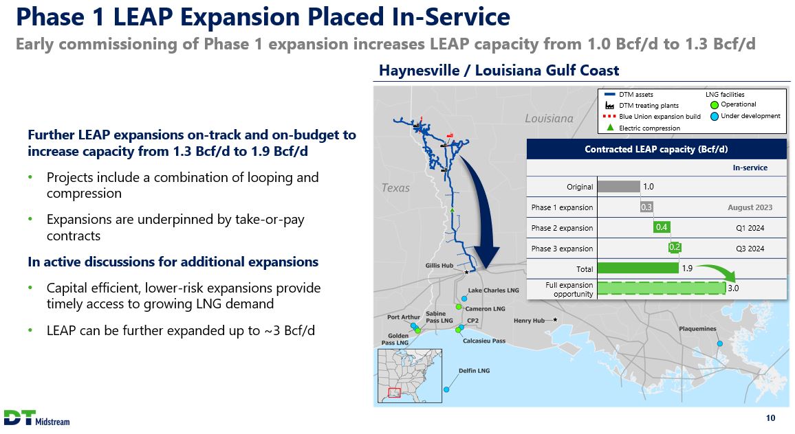 1. DTM’s investment is net of customer contribution 9 Ohio Utica System Construction progressing ahead of schedule Emerging associated gas resource development area • Initial gathering backbone buildout of >200 MMcf /d capacity – Expected DTM investment 1 of ~$100 million for 2023 - 2024 – ~5x build multiple at full run - rate – In - service expected Q1 2024, previously 1H 2024 • Customer is a large - cap investment - grade producer that has an advantaged cost structure via sizeable minerals ownership within 395k total net acres Strong commercial structure • Long - term contract, dedication, and minimum volume commitment that protects project economics • Volume expected to ramp over 18 to 24 months Opportunity for significant future development • Potential large - scale, multi - year natural gas gathering buildout • Integration with DTM downstream assets (e.g., NEXUS, Vector, and W10 Storage), providing access to premium markets Third - party processing plant Utica Combo play Initial project build Direct access to premium markets