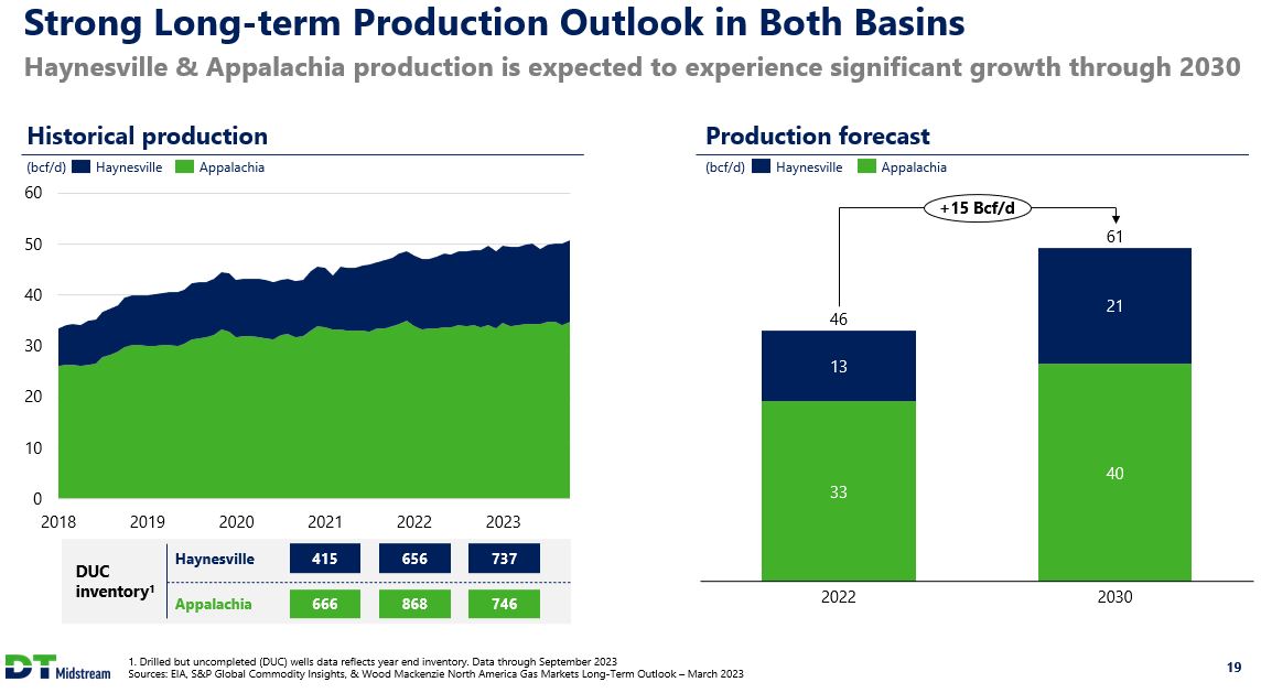 Asset 2023 - 2027 commercial focus Overview Pipeline LEAP • Active discussions for expansions up to ~3 Bcf /d • Connecting growing Haynesville supply with growing LNG demand Stonewall • Active discussions with existing and new customers for expansion opportunities • Providing incremental Appalachia pipeline takeaway to East Coast LNG and Gulf Coast markets NEXUS • Generation Pipeline interconnection • New supply connections; hydraulic optimization • Providing Ohio utility and industrial corridor access to NEXUS supply Millennium • Recently completed open season for potential expansion opportunity • Enabling additional supply into New York and New England markets through compression expansion Gathering Blue Union • Active discussions for gathering and treating expansion opportunities • Serving growing production from existing customers; step out expansions to connect new customers Appalachia Gathering • Active discussions for further expansion • Serving growing production from existing customers Ohio Utica • Initial buildout of new trunkline and gathering network • Emerging resource development in Ohio Utica Tioga • Active discussions regarding full - scale development • Supporting new drilling activity in undeveloped acreage Energy Transition Carbon Capture and Sequestration • Continue to advance Louisiana CCS opportunity towards final investment decision • New project development • Permanently sequestering CO 2 from DTM treating assets; supported by 45Q tax credit • Leveraging strong expertise to advance CCS in new regions Hydrogen • Advance hydrogen hub project concepts • Work with strategic partner to identify and advance development opportunities • Commercializing hydrogen transportation, storage and production 18 Strong Organic Opportunities Across Our Existing Footprint