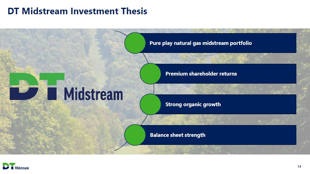 DT Midstream Investment Thesis DT Midstream Pure play natural gas midstream portfolio Premium shareholder returns Strong organic growth Balance sheet strength DT Midstream 14