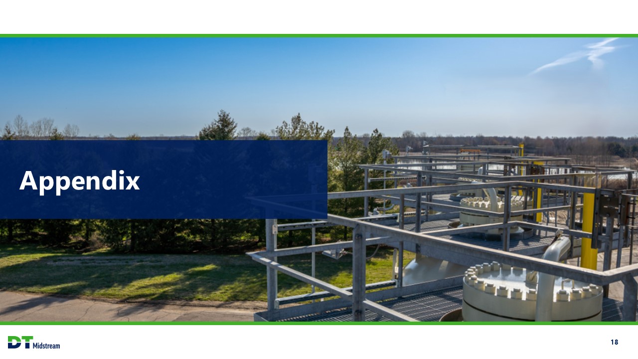 32  Non-GAAP Definitions  Operating Earnings and Operating Earnings per share are non-GAAP measures  New slide  Use of Operating Earnings Information – Operating Earnings exclude non-recurring items, certain mark-to-market adjustments and discontinued operations. DT Midstream management believes that Operating Earnings provide a more meaningful representation of the company’s earnings from ongoing operations and uses Operating Earnings as the primary performance measurement for external communications with analysts and investors. Internally, DT Midstream uses Operating Earnings to measure performance against budget and to report to the Board of Directors.   In this presentation, DT Midstream provides guidance for future period Operating Earnings. It is likely that certain items that impact the company’s future period reported results will be excluded from operating results. A reconciliation to the comparable future period reported earnings is not provided because it is not possible to provide a reliable forecast of specific line items (i.e., future non-recurring items, certain mark-to-market adjustments and discontinued operations). These items may fluctuate significantly from period to period and may have a significant impact on reported earnings.