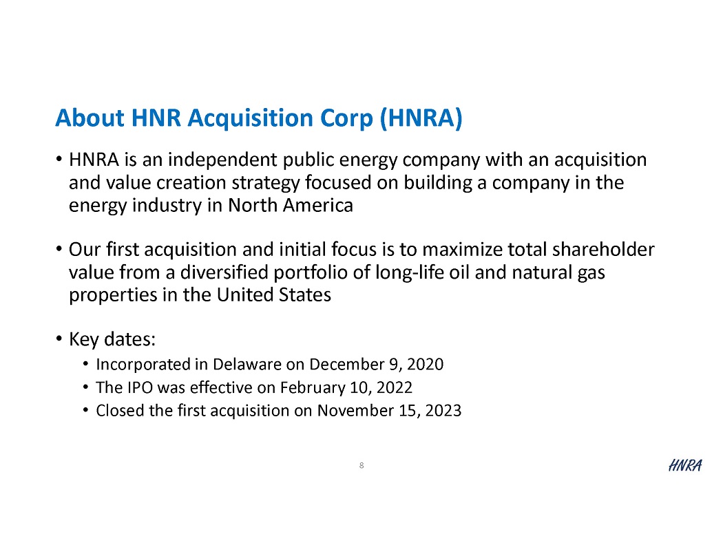 HNR Acquisition Corp Corporate Slide Presentation February 2024