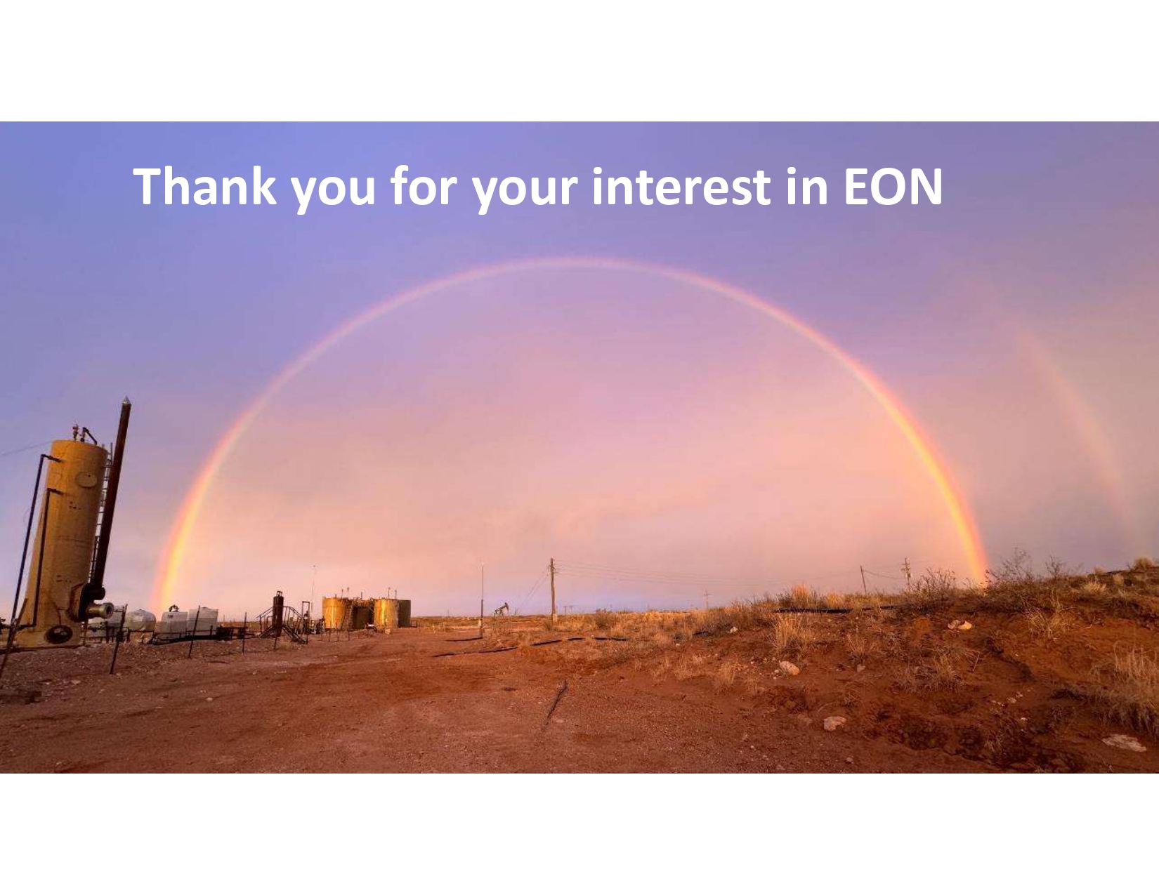Disclaimer • Forward - Looking Statements • Statements in this presentation which are not statements of historical fact are “forward - looking statements” . Our forward - looking statements include, but are not limited to, statements regarding our or our management team’s expectations, hopes, beliefs, intentions or strategies regarding the future . In addition, any statements that refer to projections, forecasts or other characterizations of future events or circumstances, including any underlying assumptions, are forward - looking statements . The words “anticipate,” “believe,” “continue,” “could,” “estimate,” “expect,” “intends,” “may,” “might,” “plan,” “possible,” “potential,” “predict,” “project,” “should,” “would” and similar expressions may identify forward - looking statements, but the absence of these words does not mean that a statement is not forward - looking . All statements other than statements of historical fact included in this presentation are forward - looking statements and are based on various underlying assumptions and expectations and are subject to known and unknown risks and uncertainties, and may include projections of our future financial performance based on our growth strategies, business plans and anticipated trends in our business . These forward - looking statements, are only predictions based on our current expectations and projections about future events . There are important factors that could cause our actual results, level of activity, performance or achievements to differ materially from the results, level of activity, performance, targets, goals or achievements expressed or implied in the forward - looking statements . These factors include, but are not limited to, those discussed in our Annual Report on Form 10 - K under Item 1 A “Risk Factors,” and also discussed from time to time in our quarterly reports on Form 10 - Q, current reports on Form 8 - K, proxy statements, and other SEC filings including the following : ( 1 ) the financial and business performance of the Company, ( 2 ) the Company’s abilities to execute its business strategies, ( 3 ) the level of production on our properties, ( 4 ) overall and regional supply and demand factors, delays, or interruptions of production, ( 5 ) competition in the oil and natural gas industry, ( 6 ) risks associated with the drilling and operation of crude oil and natural gas wells, including uncertainties with respect to identified drilling locations and estimates of reserves, and ( 7 ) the effect of existing and future laws and regulatory actions, including federal and state legislative and regulatory initiatives relating to hydraulic fracturing and environmental matters, including climate change . These forward - looking statements are based on the information available to, and the expectations and assumptions deemed reasonable by, the Company at the time this presentation was prepared . Although the Company believes that the assumptions underlying such statements are reasonable, it cannot give assurance that they will be attained . We undertake no obligation to update or revise any forward - looking statements, whether as a result of new information, future events or otherwise, except as may be required under applicable securities law . You are cautioned not to place undue reliance upon any forward - looking statements, which speak only as of the date made . EON undertakes no commitment to update or revise the forward - looking statements, whether as a result of new information, future events or otherwise, except as may be required by law . • In preparing this presentation, the Company has substantially and materially relied on the Evaluations of Certain Oil and Gas Properties ("reserve reports") rendered by William M . Cobb & Associates, Inc . ("Cobb"), an unrelated third party that had previously been engaged and compensated by EON concerning the oil and gas assets owned by EON including, without limitation, the proved reserves and future income as of the date of the Cobb reserve reports, the most recent reflecting values as of December 31 , 2023 . 3
