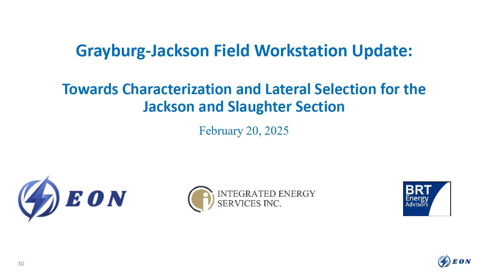 Towards Characterization and Lateral Selection for the Jackson and Slaughter Section February 20, 2025 Grayburg - Jackson Field Workstation Update: 30