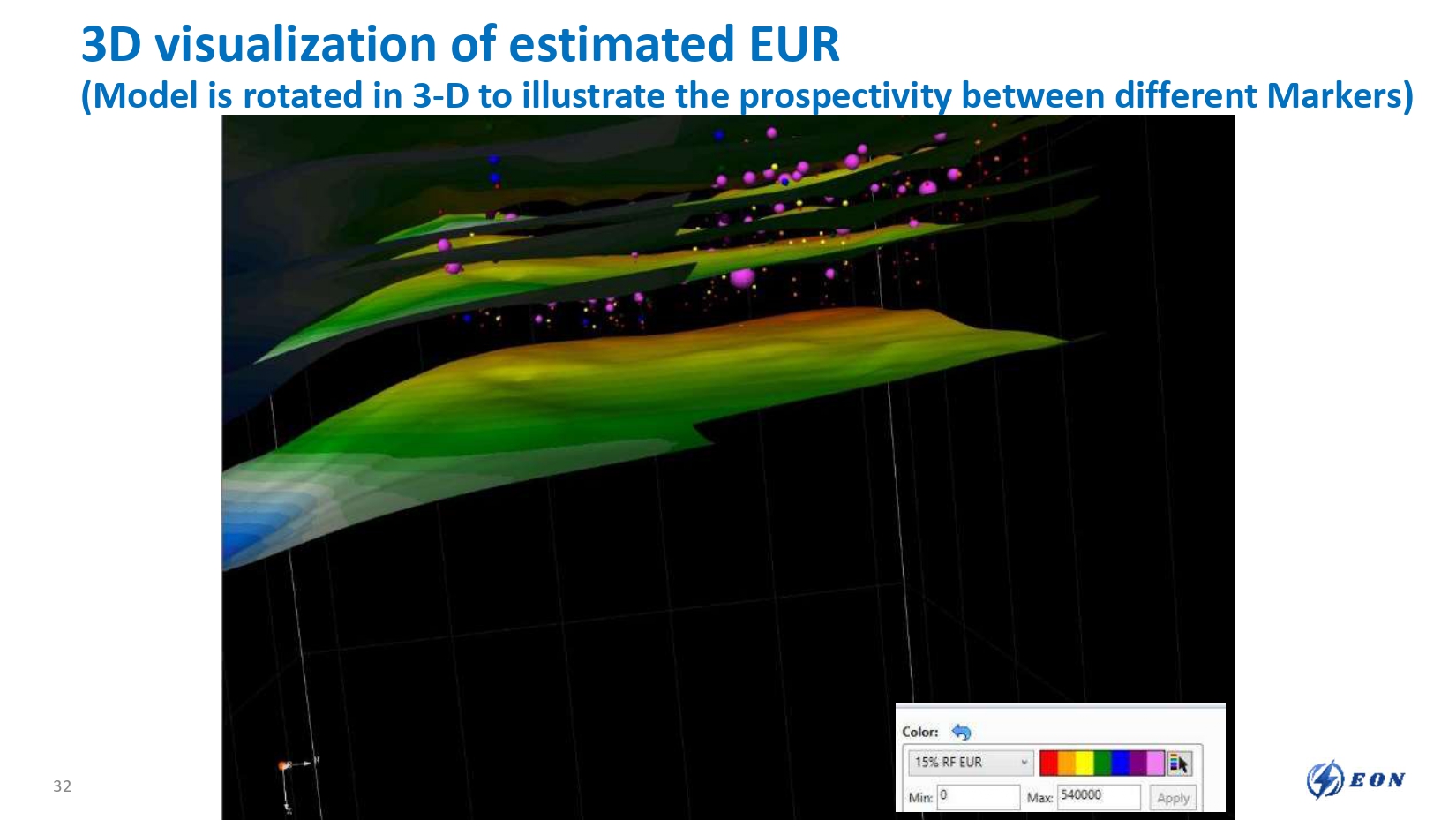 3D visualization of estimated EUR (Model is rotated in 3 - D to illustrate the prospectivity between different Markers) 32