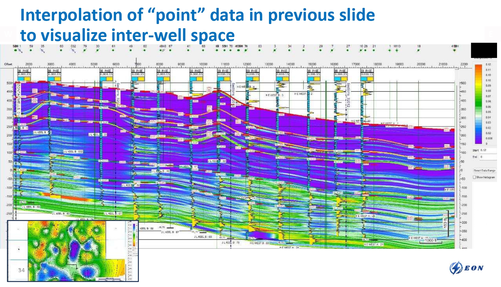 W E Interpolation of “point” data in previous slide to visualize inter - well space 34