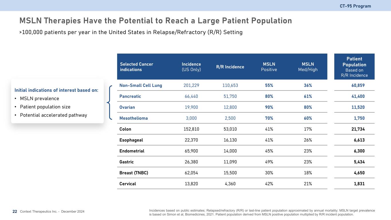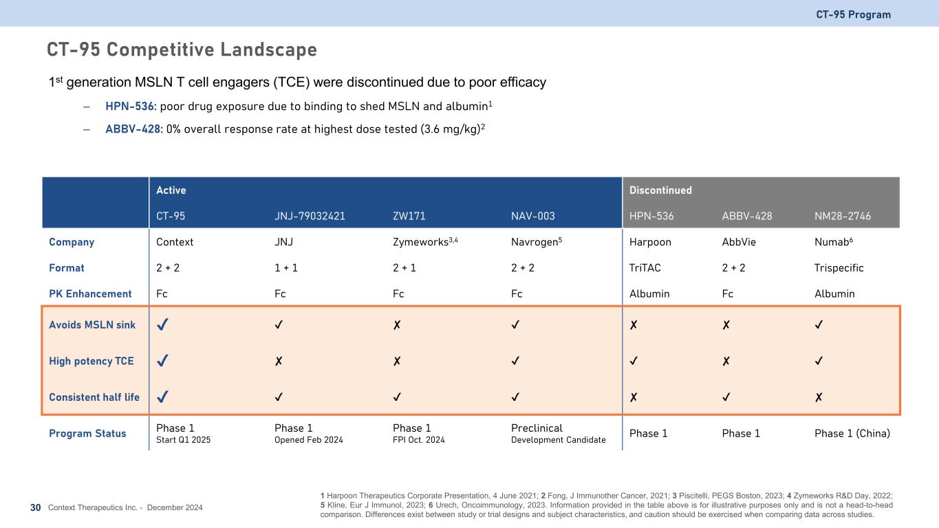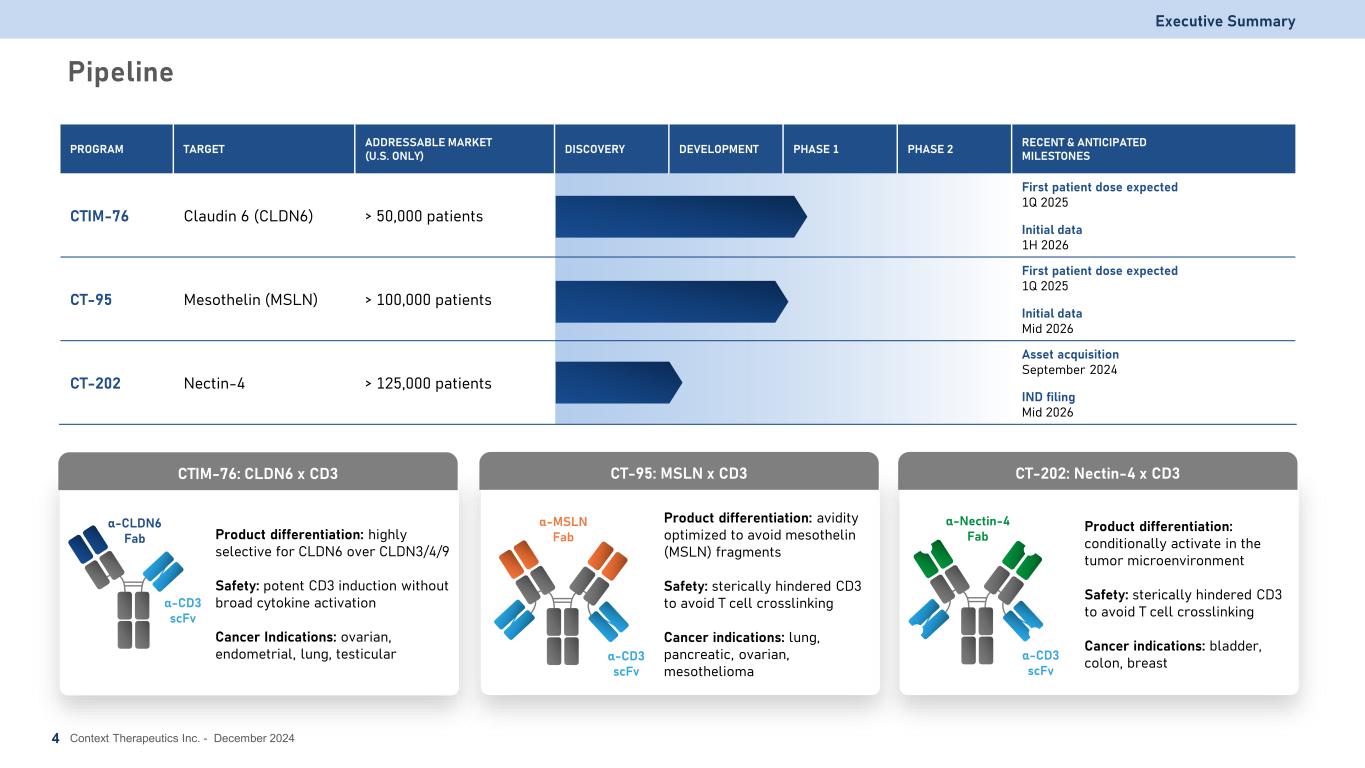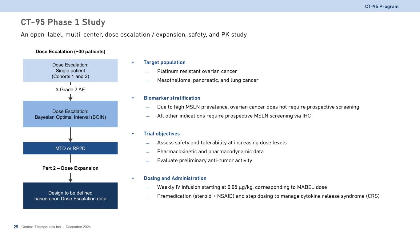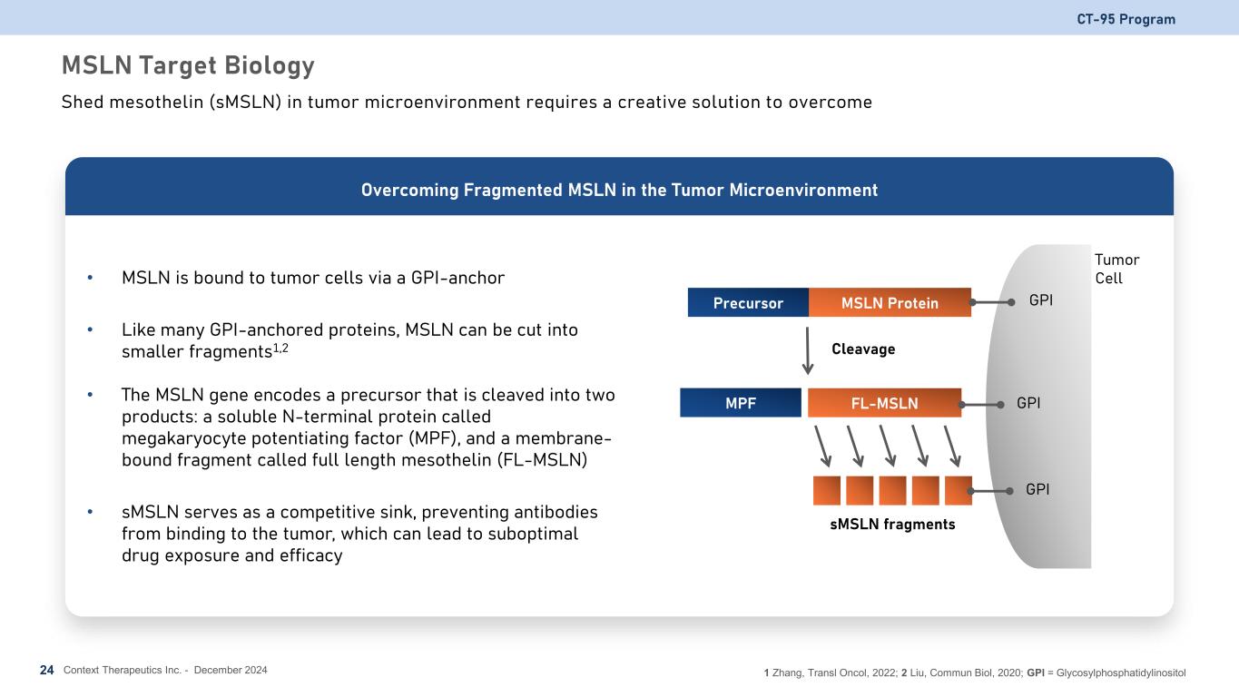 CT-95 MSLN x CD3 bispecific antibody Context Therapeut ics Inc . - December 202421