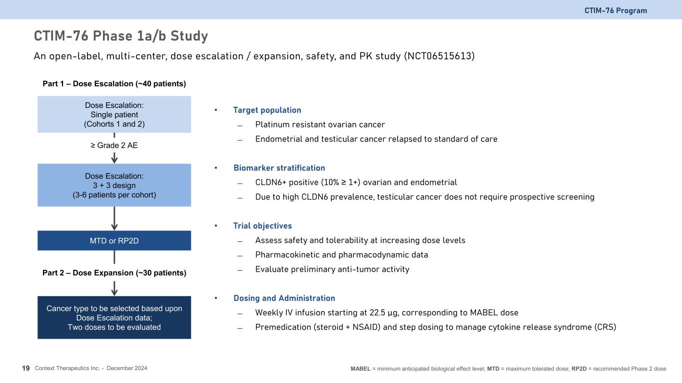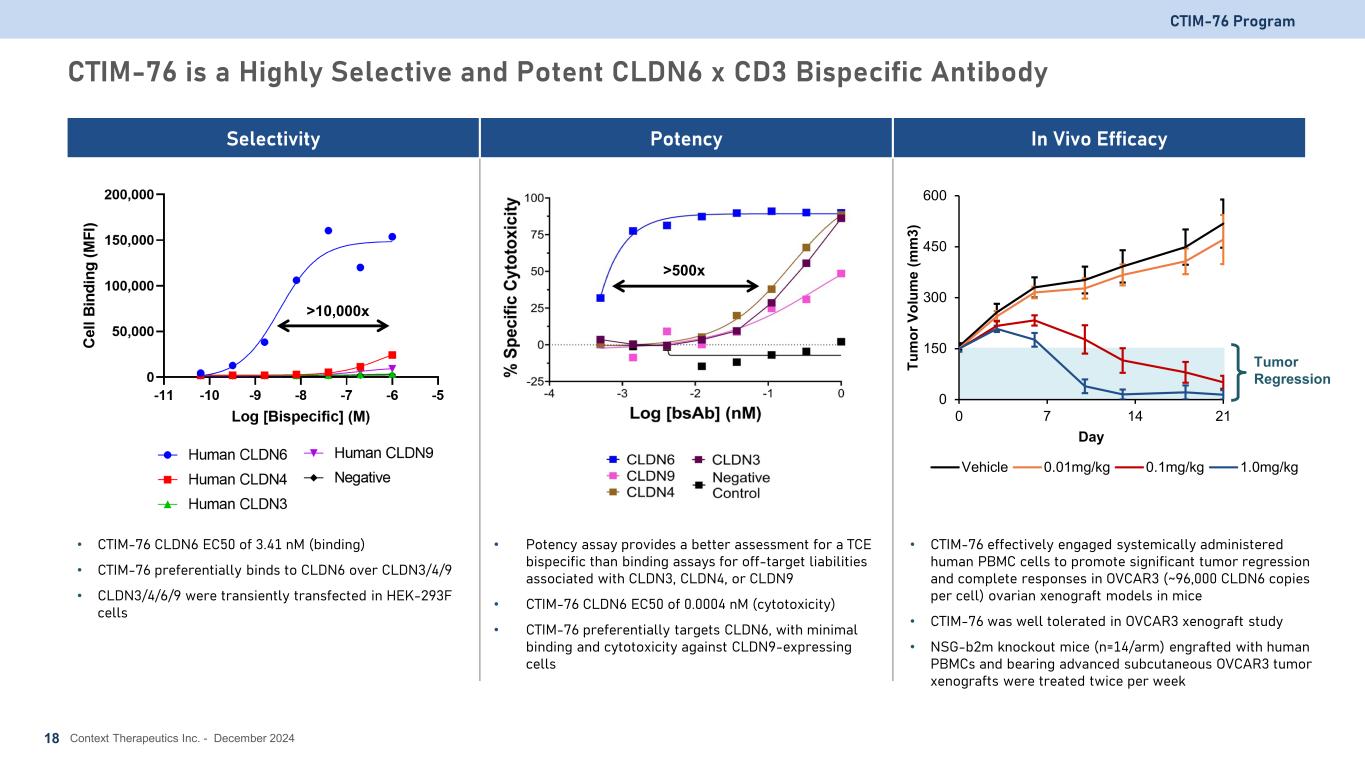 CTIM-76 CLDN6 x CD3 bispecific antibody Context Therapeut ics Inc . - December 202412