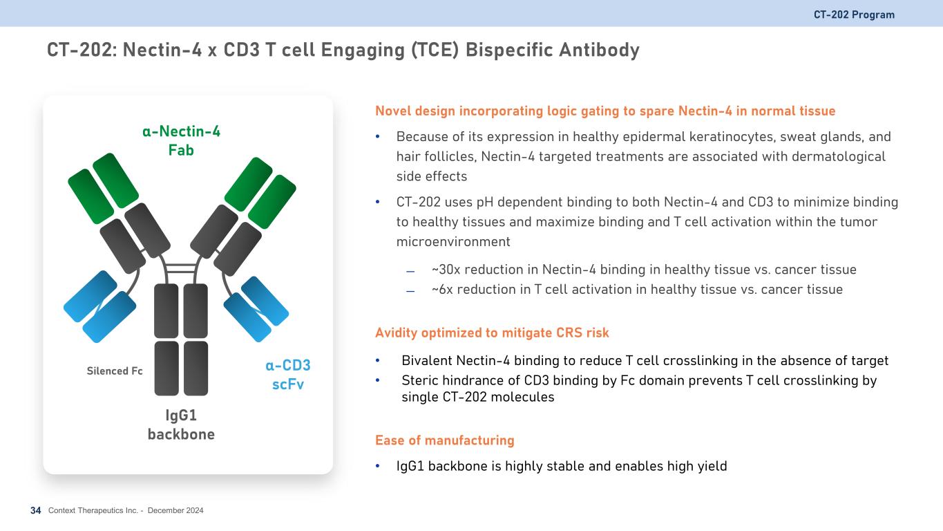 CT-202 Nectin-4 x CD3 bispecific antibody Context Therapeut ics Inc . - December 202431