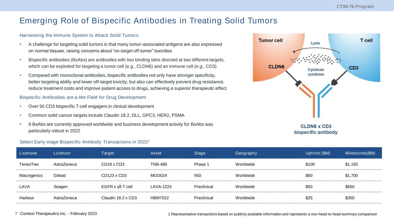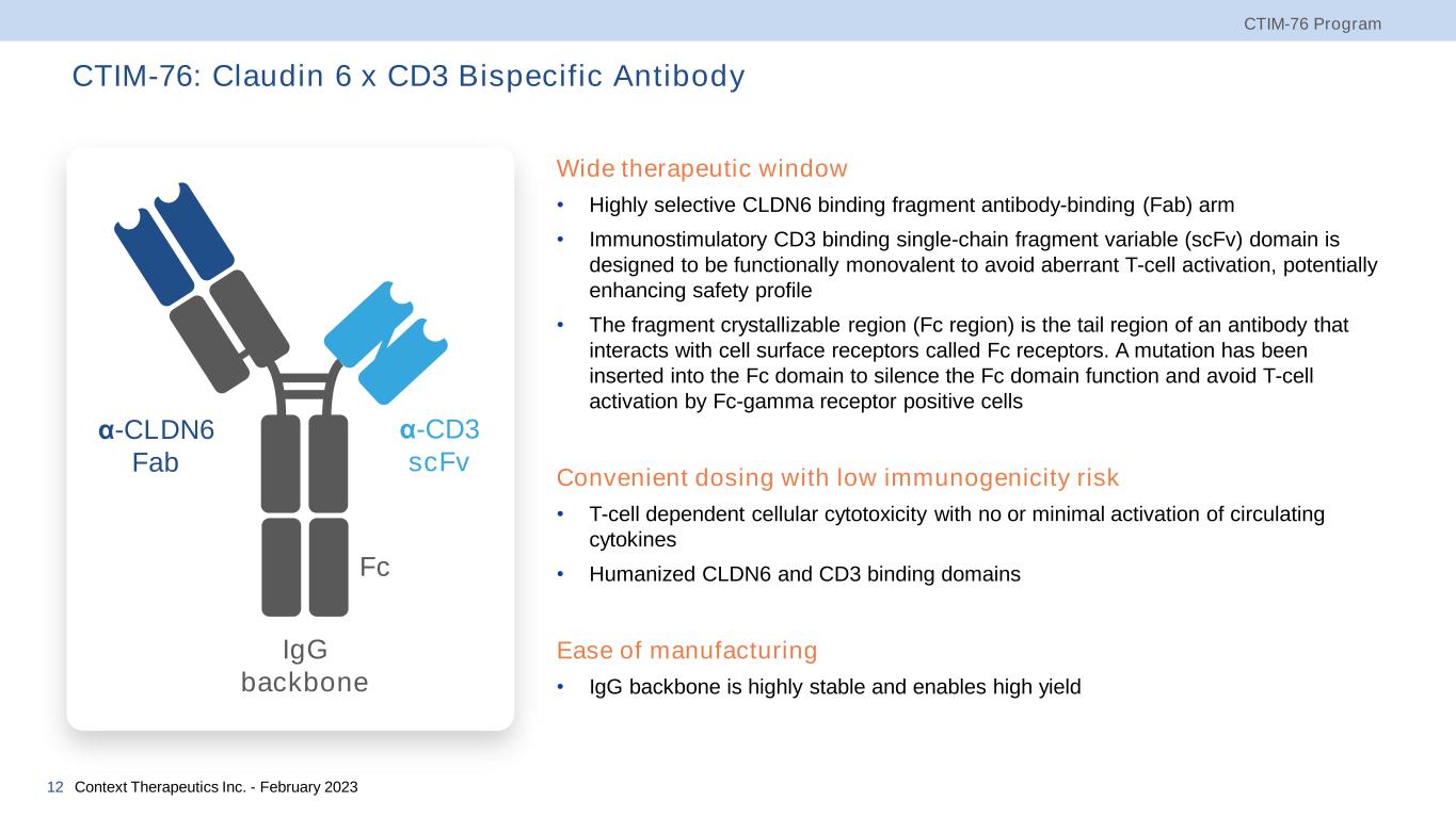 CTIM-76 CLDN6xCD3 bispecific antibody 6 Contex t Therapeut ics Inc. - February 2023