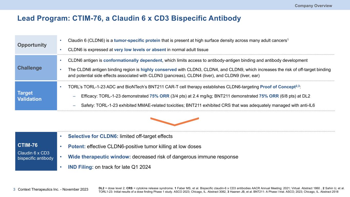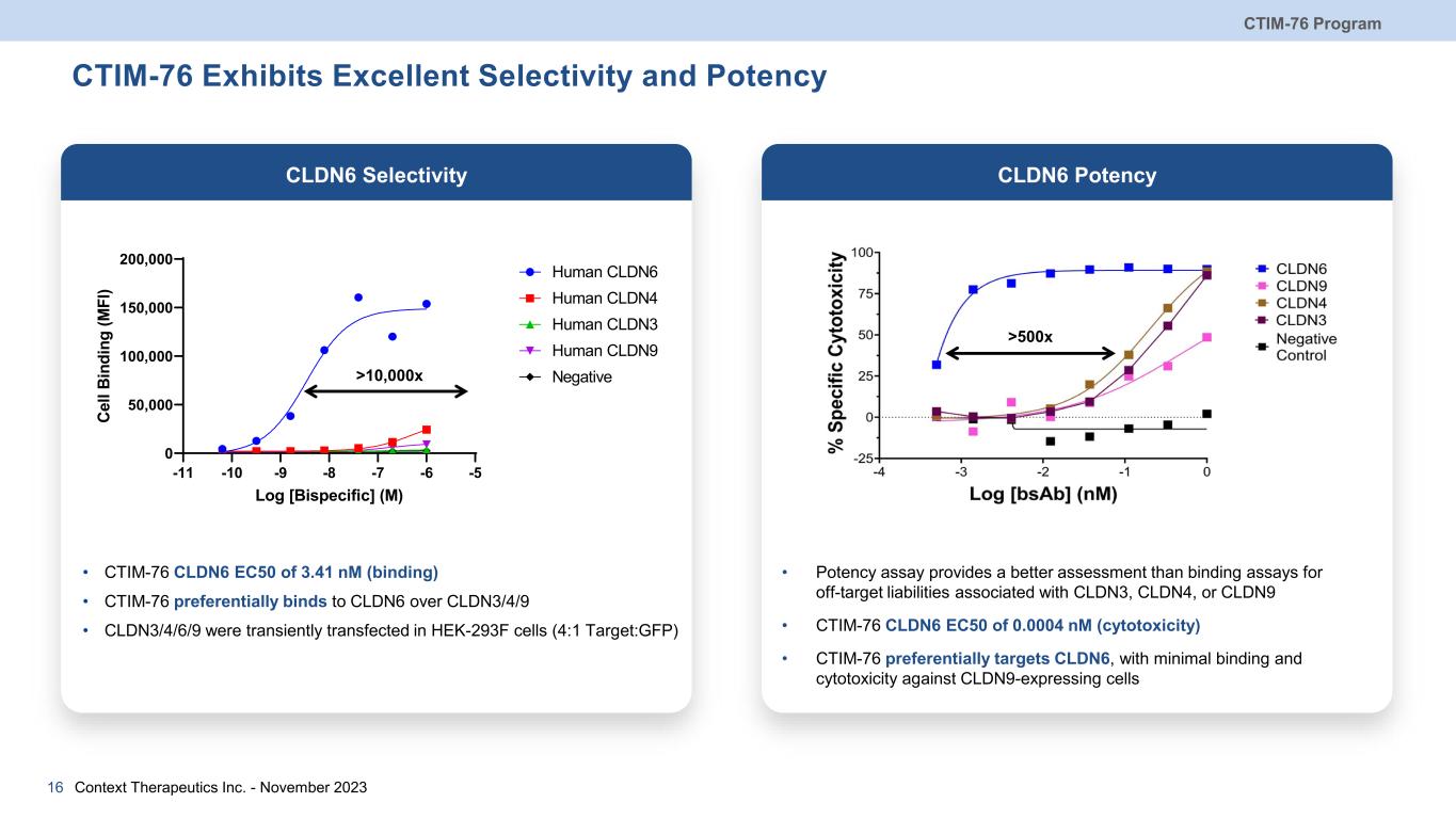 CTIM-76 Claudin 6 x CD3 Development Candidate Context Therapeutics Inc. - November 202314