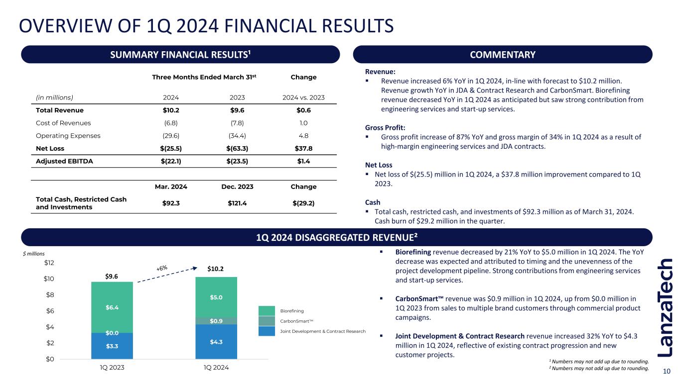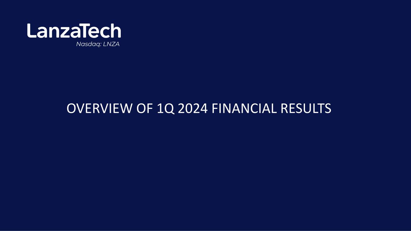 OVERVIEW OF 1Q 2024 FINANCIAL RESULTS Nasdaq: LNZA