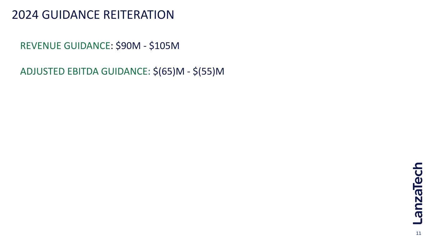 11 2024 GUIDANCE REITERATION REVENUE GUIDANCE: $90M - $105M ADJUSTED EBITDA GUIDANCE: $(65)M - $(55)M