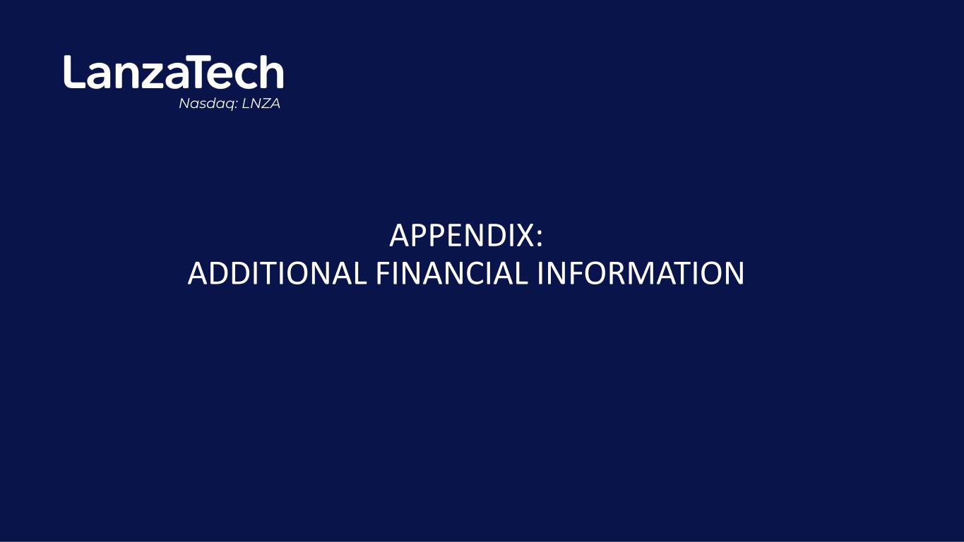 APPENDIX: ADDITIONAL FINANCIAL INFORMATION Nasdaq: LNZA