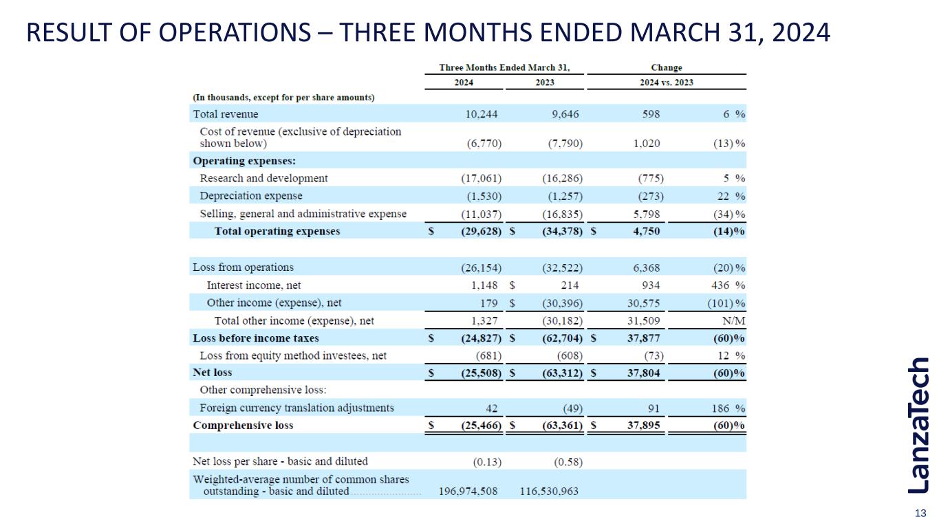 13 RESULT OF OPERATIONS – THREE MONTHS ENDED MARCH 31, 2024