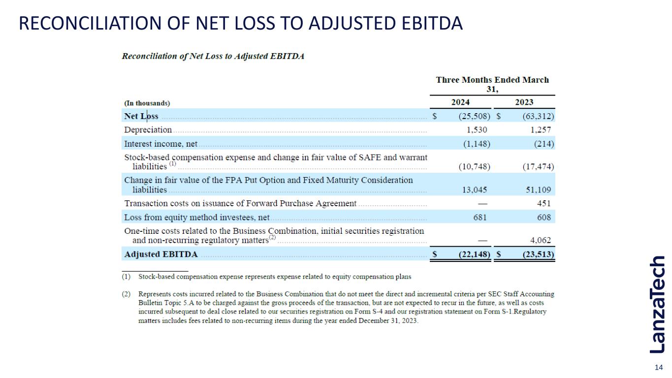 14 RECONCILIATION OF NET LOSS TO ADJUSTED EBITDA