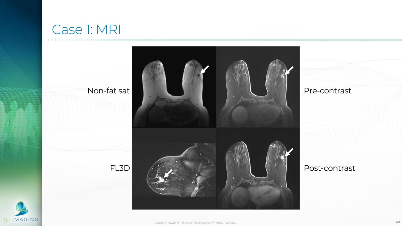 40 Case 1: MRI Non-fat sat Pre-contrast Post-contrastFL3D Copyright ©2024 QT Imaging, Holdings, Inc. All Rights Reserved.