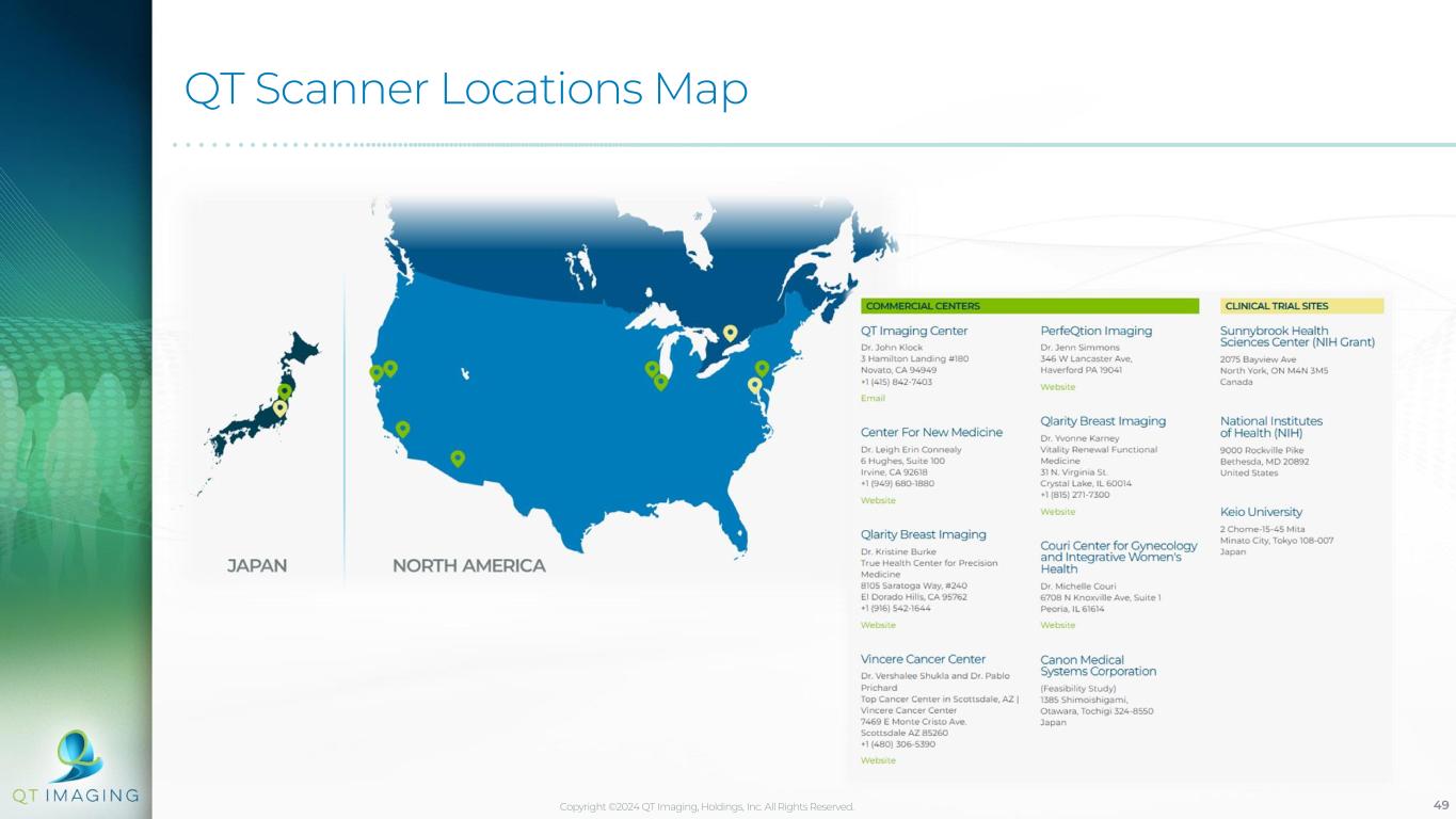 49 QT Scanner Locations Map Copyright ©2024 QT Imaging, Holdings, Inc. All Rights Reserved.