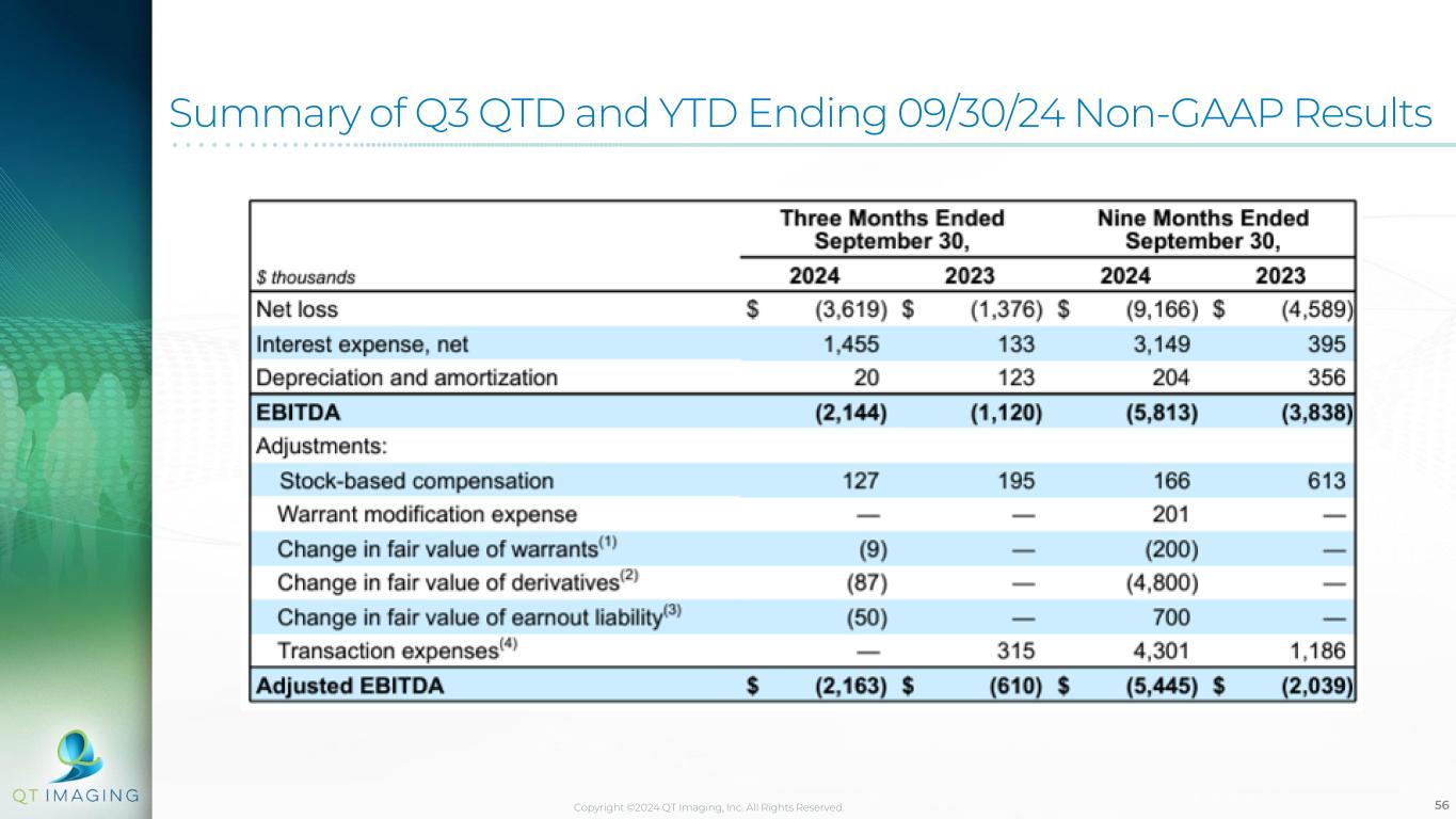 55Copyright ©2024 QT Imaging, Inc. All Rights Reserved. Summary of Q3 QTD and YTD Ending 09/30/24 GAAP Results