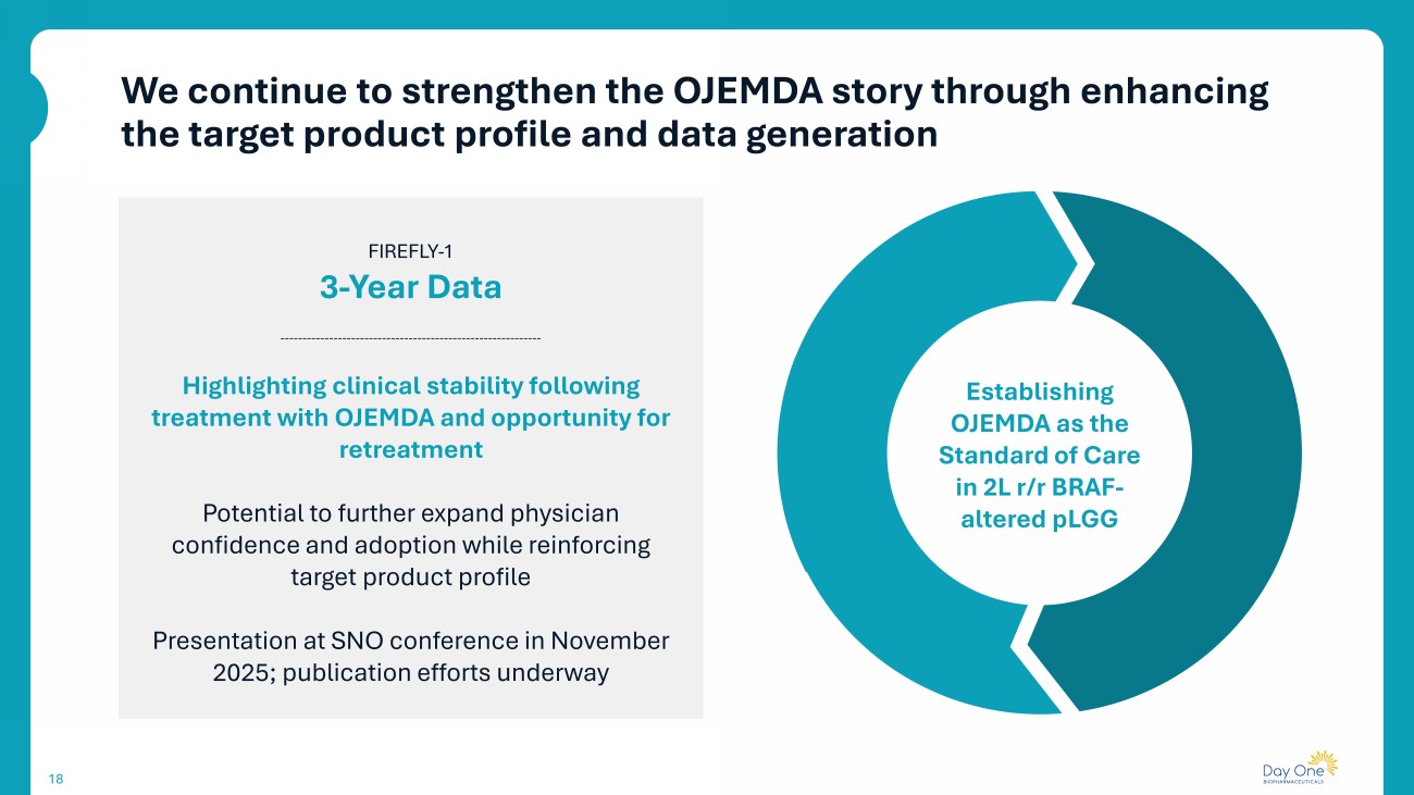 Focused execution and meaningful progress driving continued adoption and treatment durability through 2025 17 * On label patients only. Raising 2025 guidance to $145 - $150 million net product revenue OPTIMIZE PERSISTENCE Support physicians and patients to optimize their experience on OJEMDA including effective AE management and reimbursement support Increase depth of prescribing by expanding physicians' belief in which patients will benefit from OJEMDA and using it in 2L* Continue to expand prescriber base by converting non - users into first - time adopters of OJEMDA DRIVE NEW PATIENT STARTS