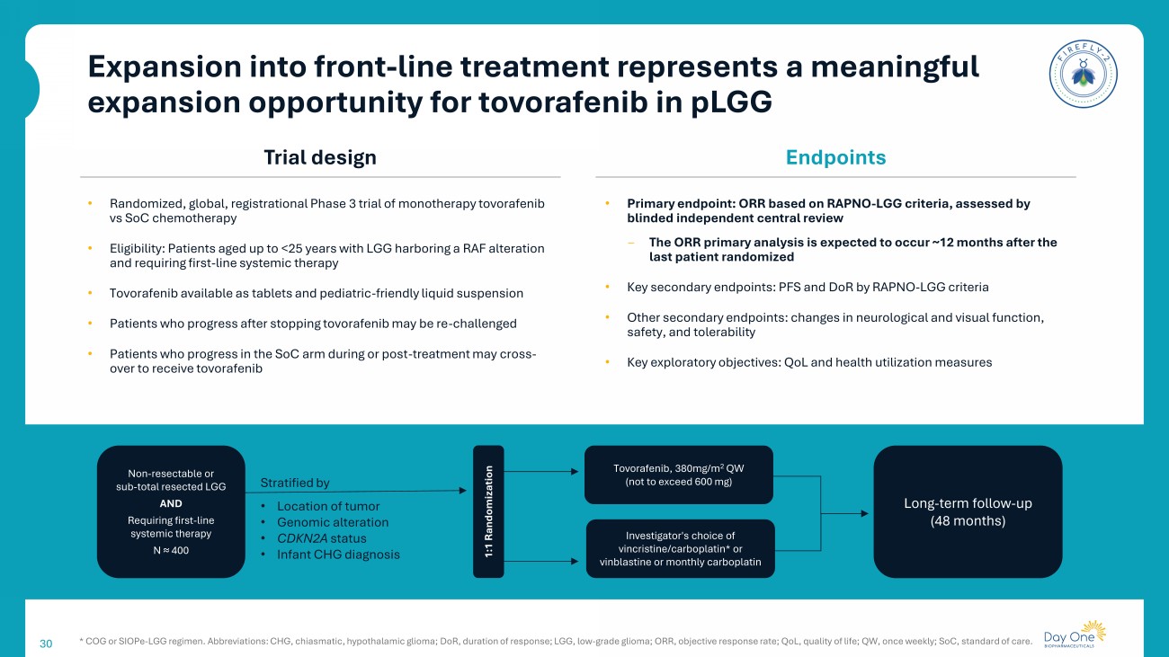 29 Pivotal Phase 3 trial of tovorafenib in front - line pLGG FIREFLY - 2 Bradon Living with pLGG since age 11