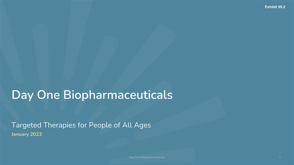 Exhibit 99.2 Day One Biopharmaceuticals Targeted Therapies for People of All Ages January 2023 Day One Biopharmaceuticals 1