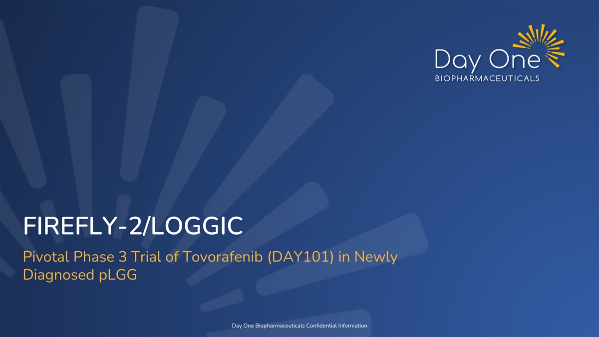 FIREFLY-2/LOGGIC Pivotal Phase 3 Trial of Tovorafenib (DAY101) in Newly Diagnosed pLGG Day One Biopharmaceuticals Confidential Information