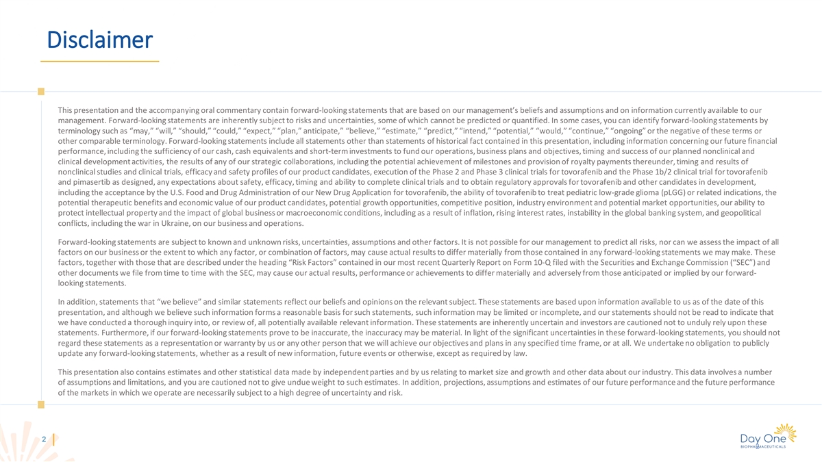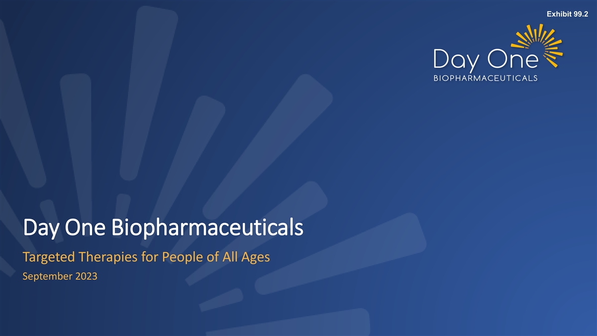Exhibit 99.2 Day One Biopharmaceuticals Targeted Therapies for People of All Ages September 2023