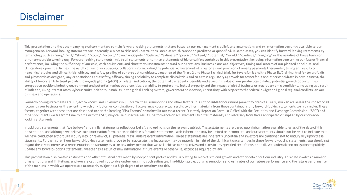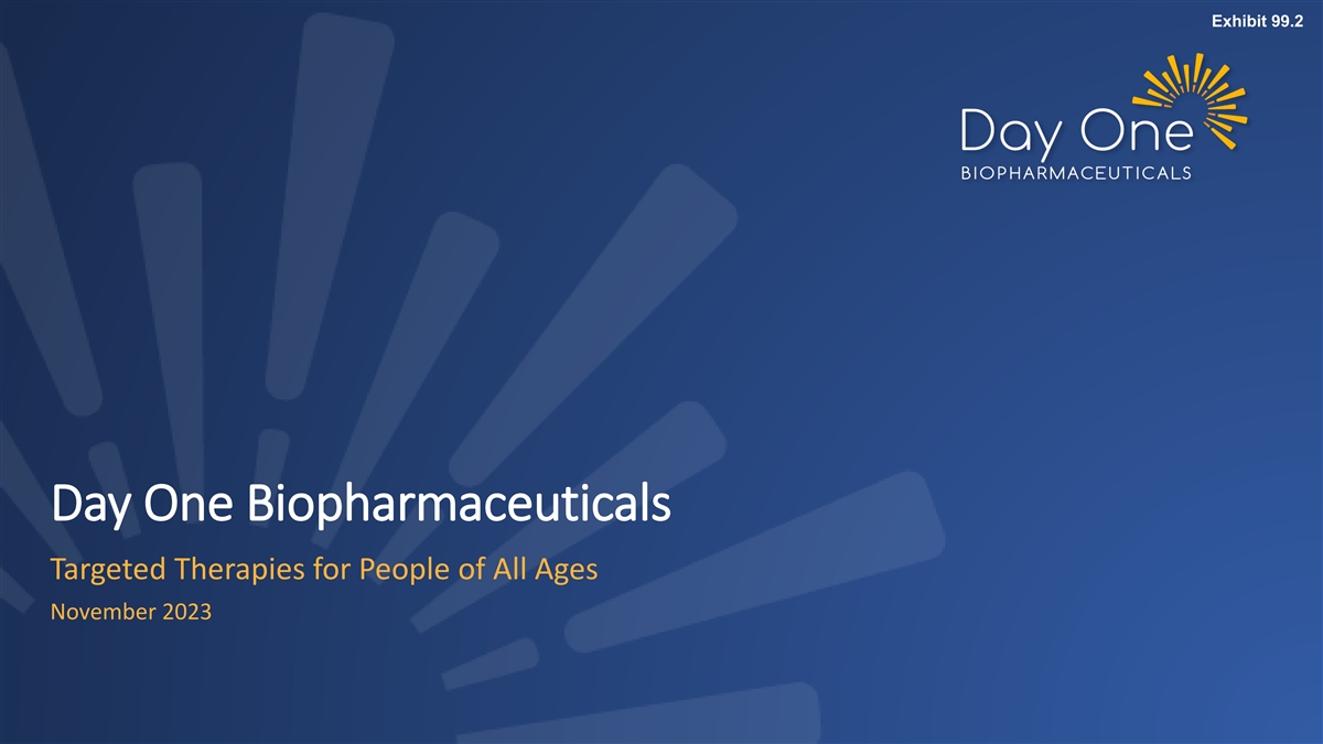 Exhibit 99.2 Day One Biopharmaceuticals Targeted Therapies for People of All Ages November 2023