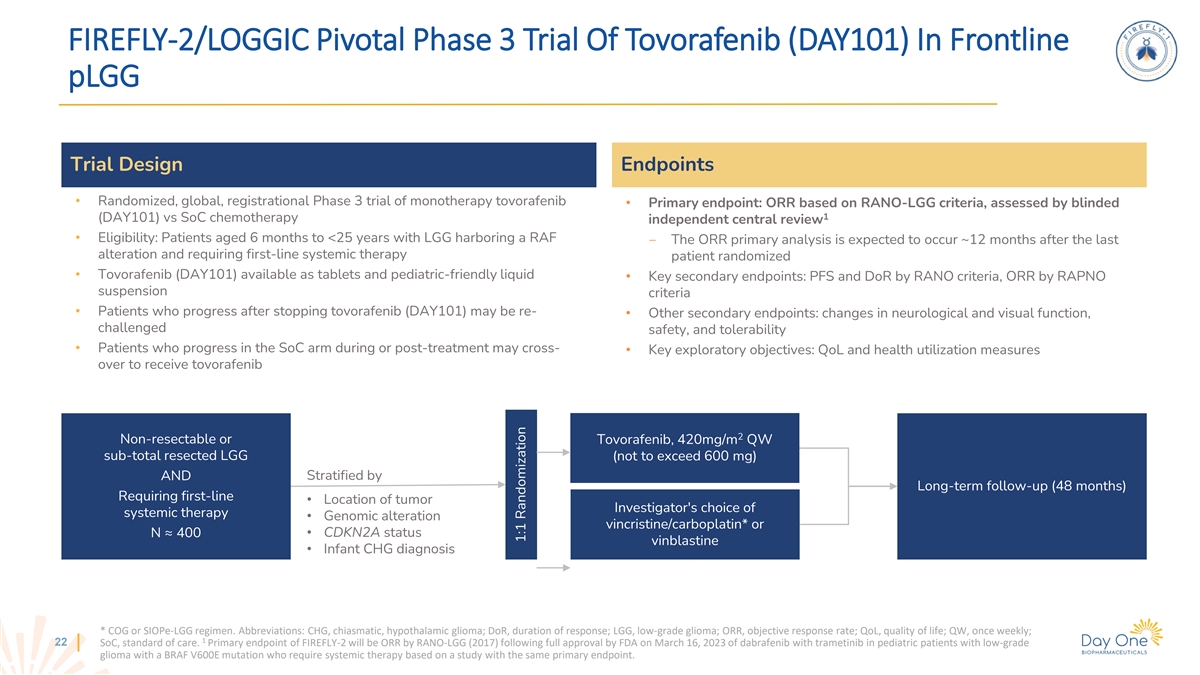 FIREFLY-2/LOGGIC Pivotal Phase 3 Trial of Tovorafenib (DAY101) in Frontline pLGG