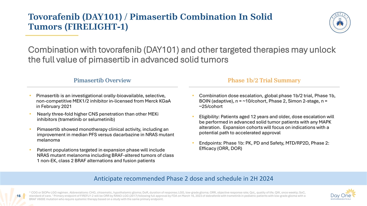 FIRELIGHT-1 Phase 1b/2 Trials Evaluating Tovorafenib (DAY101) as a Combination with Pimasertib 15