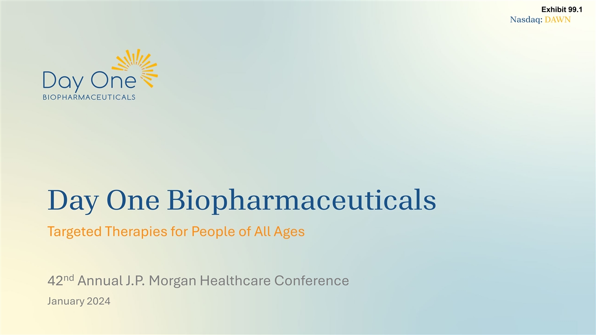 Exhibit 99.1 Nasdaq: DAWN Day One Biopharmaceuticals Targeted Therapies for People of All Ages nd 42 Annual J.P. Morgan Healthcare Conference January 2024 1