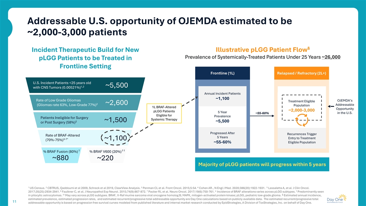 OJEMDA is Day One’s Foundation Our goal is to enable children with pLGG to live as normal of a childhood as possible, without interruptions Key factors expected to drive OJEMDA’s commercial opportunity • Profile aligned with prescriber and patient needs • Commercial execution driving awareness to increase breadth and depth of prescribers • Significant growth opportunity as we strengthen market position as the standard of care in 2nd line • Broad payer coverage established 10