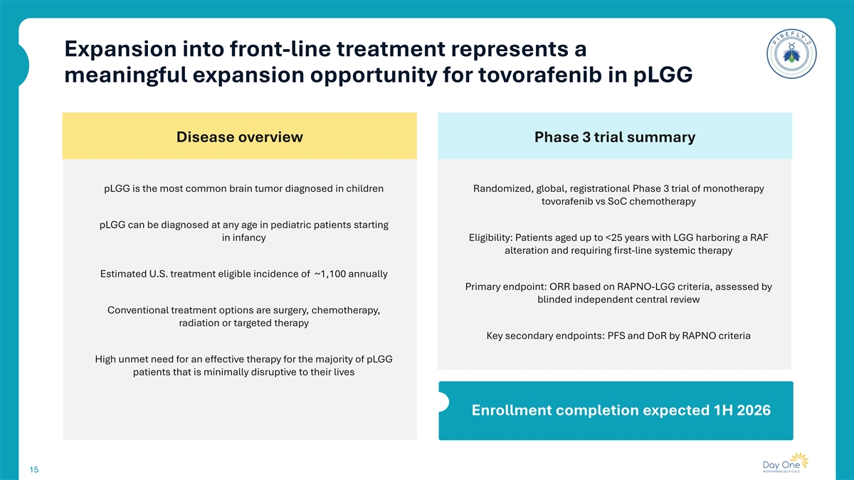 FIREFLY-2 Pivotal phase 3 trial of tovorafenib in front-line pLGG Bradon Living with pLGG since age 11 14
