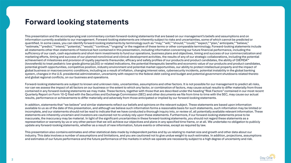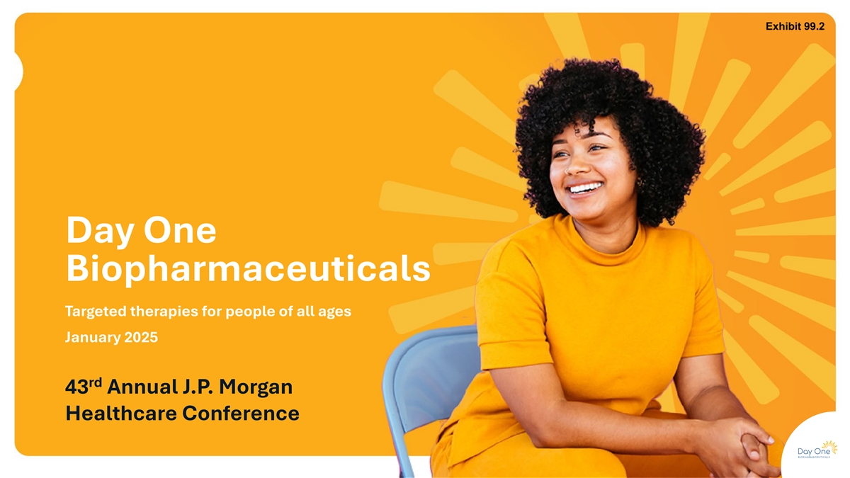 Exhibit 99.2 Day One Biopharmaceuticals Targeted therapies for people of all ages January 2025 rd 43 Annual J.P. Morgan Healthcare Conference