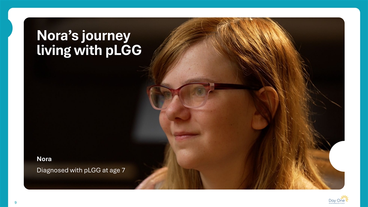 Nora’s journey living with pLGG Nora Diagnosed with pLGG at age 7 9