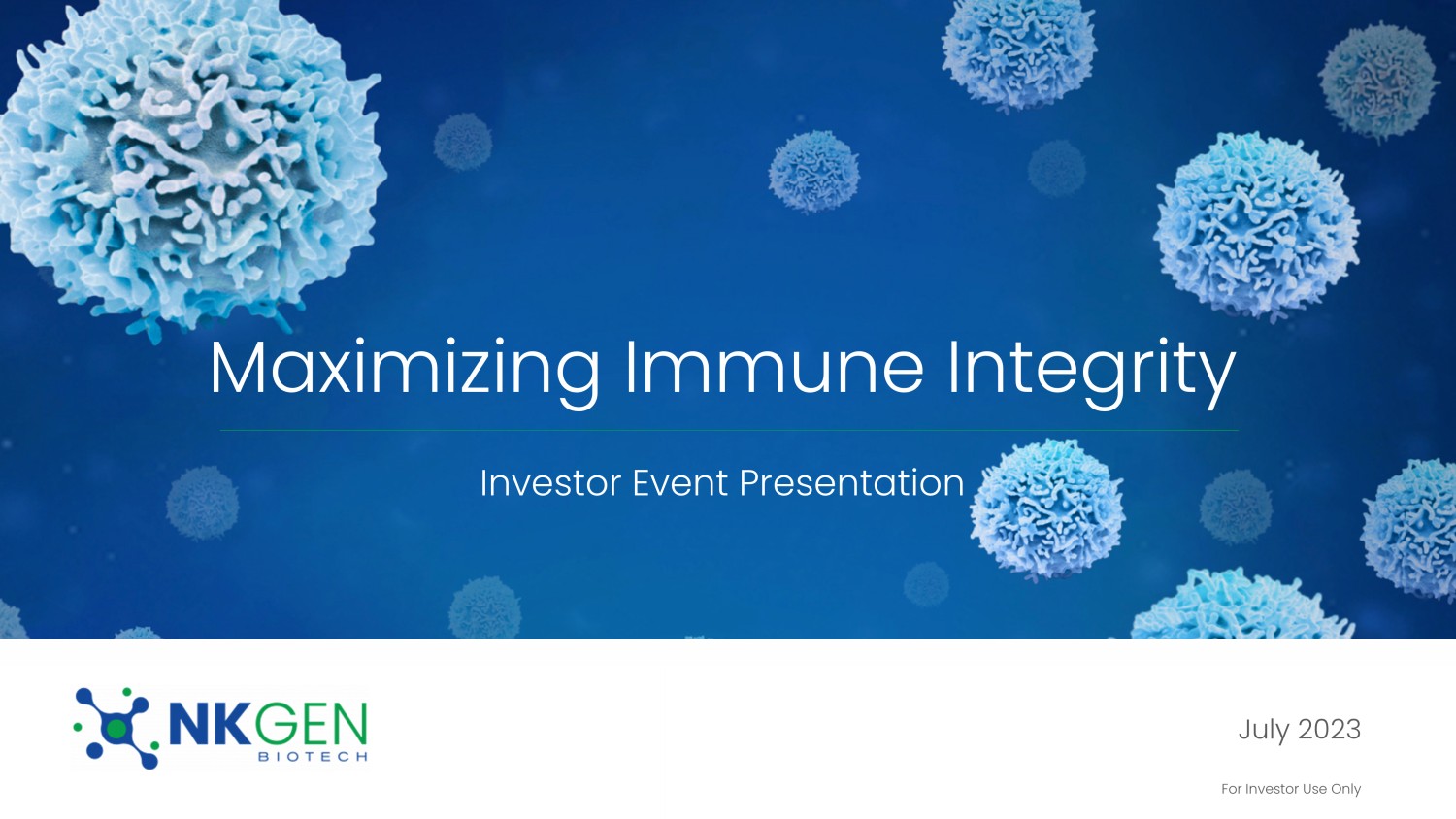 For Investor Use Only For Investor Use Only Maximizing Immune Integrity Investor Event Presentation July 2023
