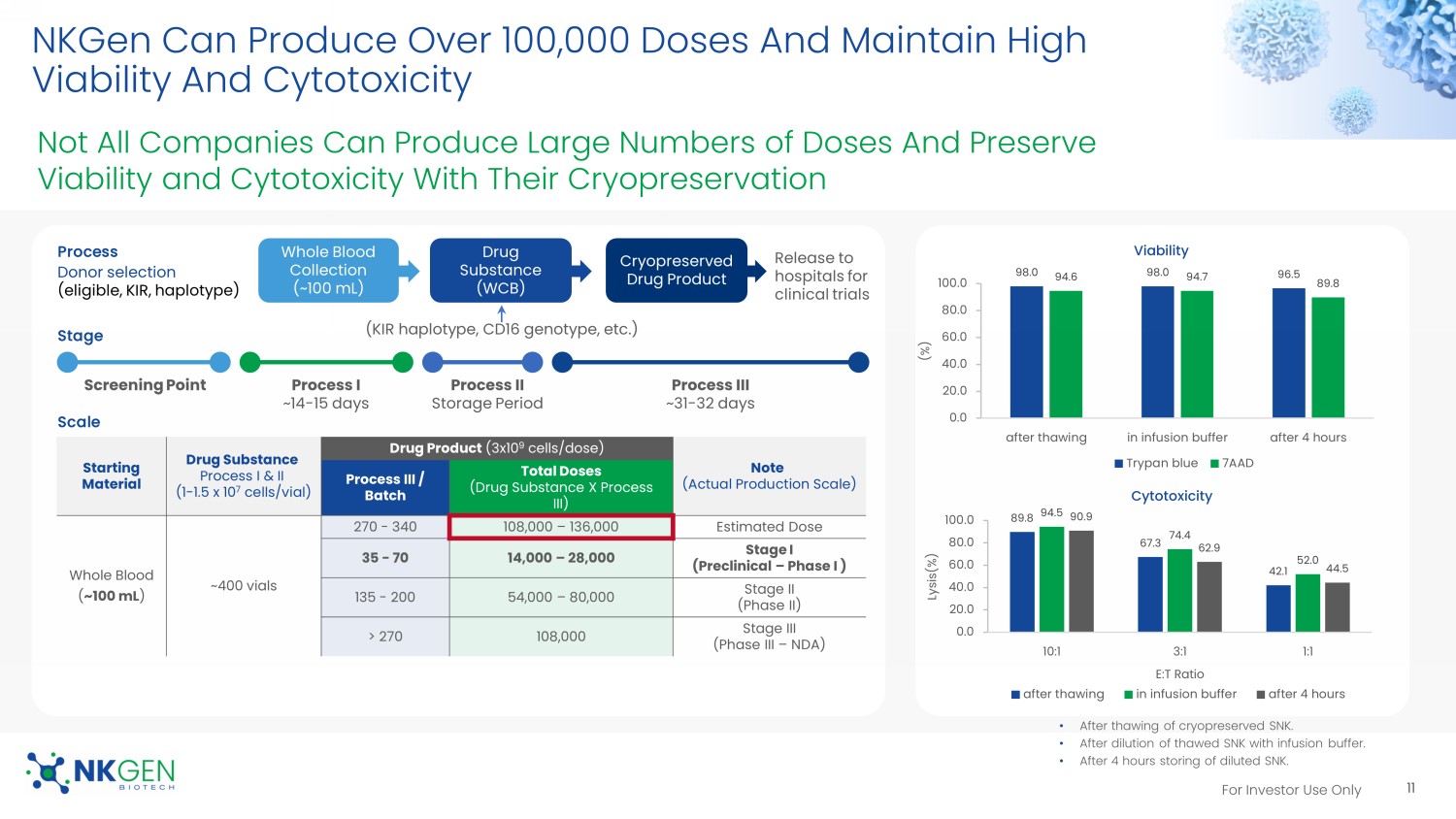 For Investor Use Only NKGen – Engineering, Expansion, And Cryopreservation 50 Analysis / Final product and cell banking Collection NK cell stimulation Engineering Expansion & Enrichment Collection D0 D3 - 6 D10 - 11 D14 D45 IL - 2 IL - 21 Feeder
