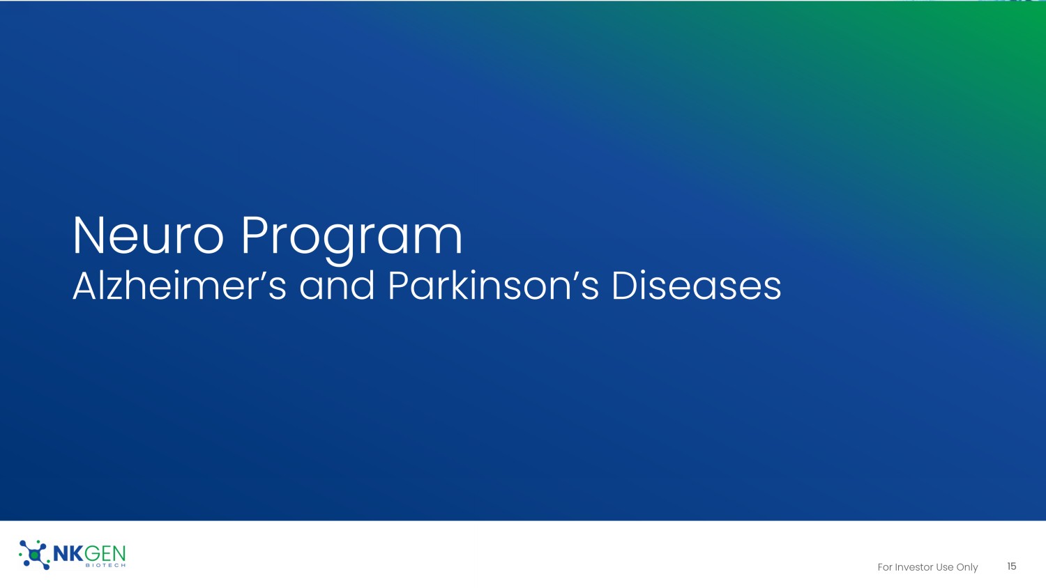 For Investor Use Only Neuro Program Alzheimer’s and Parkinson’s Diseases 15