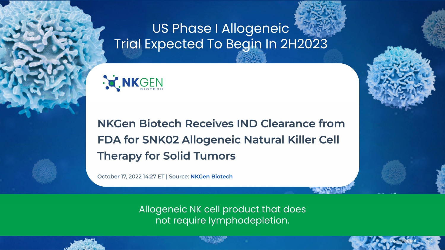 For Investor Use Only Allogeneic NK cell product that does not require lymphodepletion. US Phase I Allogeneic Trial Expected To Begin In 2H2023 44 Confidential