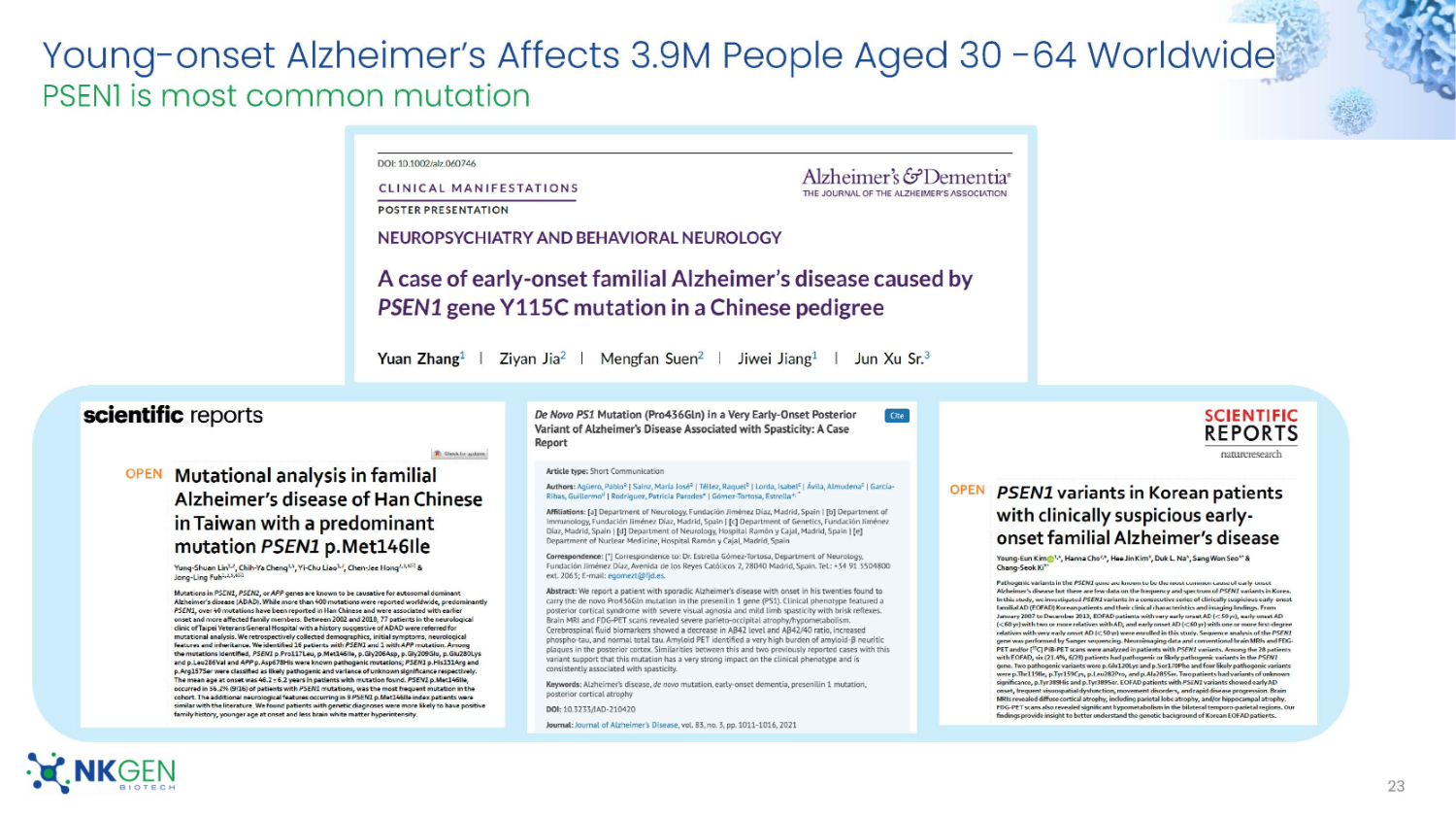 23 Young - onset Alzheimer’s Affects 3.9M People Aged 30 - 64 Worldwide PSEN1 is most common mutation