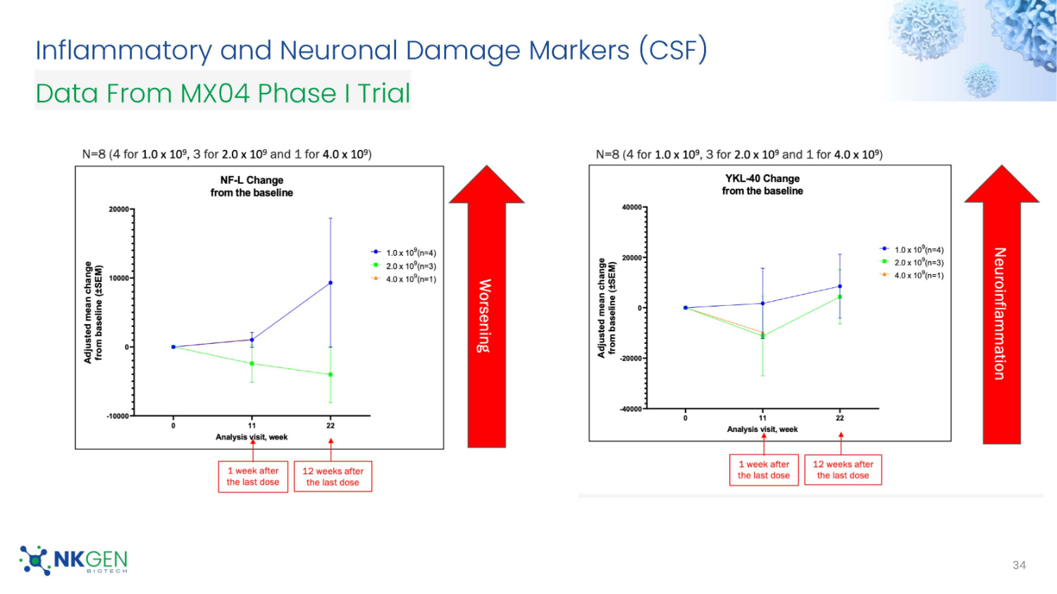 Inflammatory and Neuronal Damage Markers (CSF) 34 Data From MX04 Phase I Trial ​